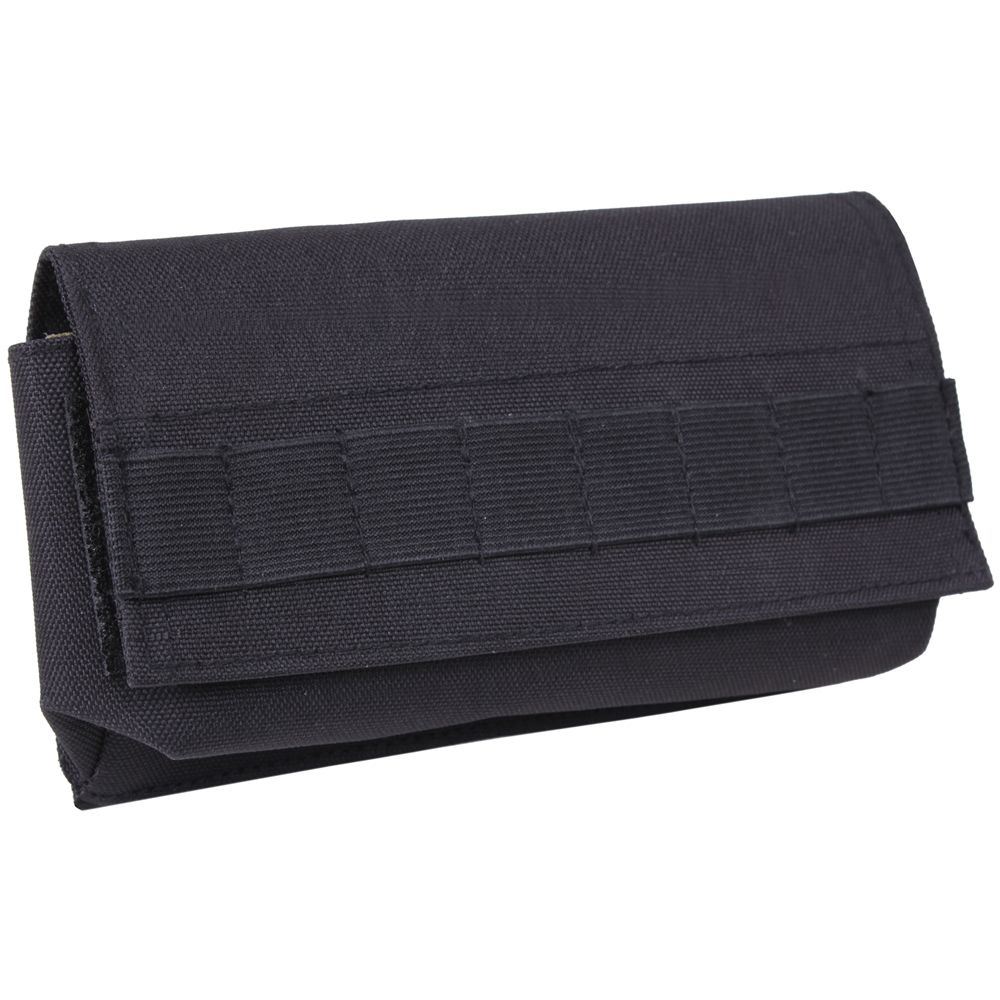 Horizontal Shotgun Shell Ammo Pouch is 3 rows of elastic loops that will hold 18 shells with 4 Molle attachment straps on the back. Made of 600D polyester, this hook & loop closure Shotgun Shell Ammo Pouch is available in Black or Olive Drab.