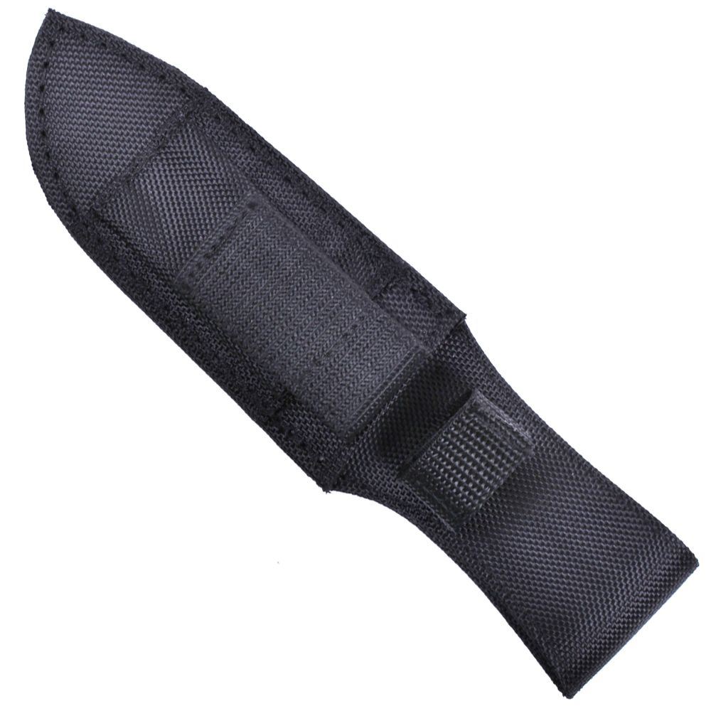 The Rothco Fixed Blade Knife is a 9 3/4” knife with a 4 3/4” blade made of painted steel. The black plastic handle features a neon green skull design, lanyard hole, and comes with a polyester sheath with a pouch for a sharpening stone.
