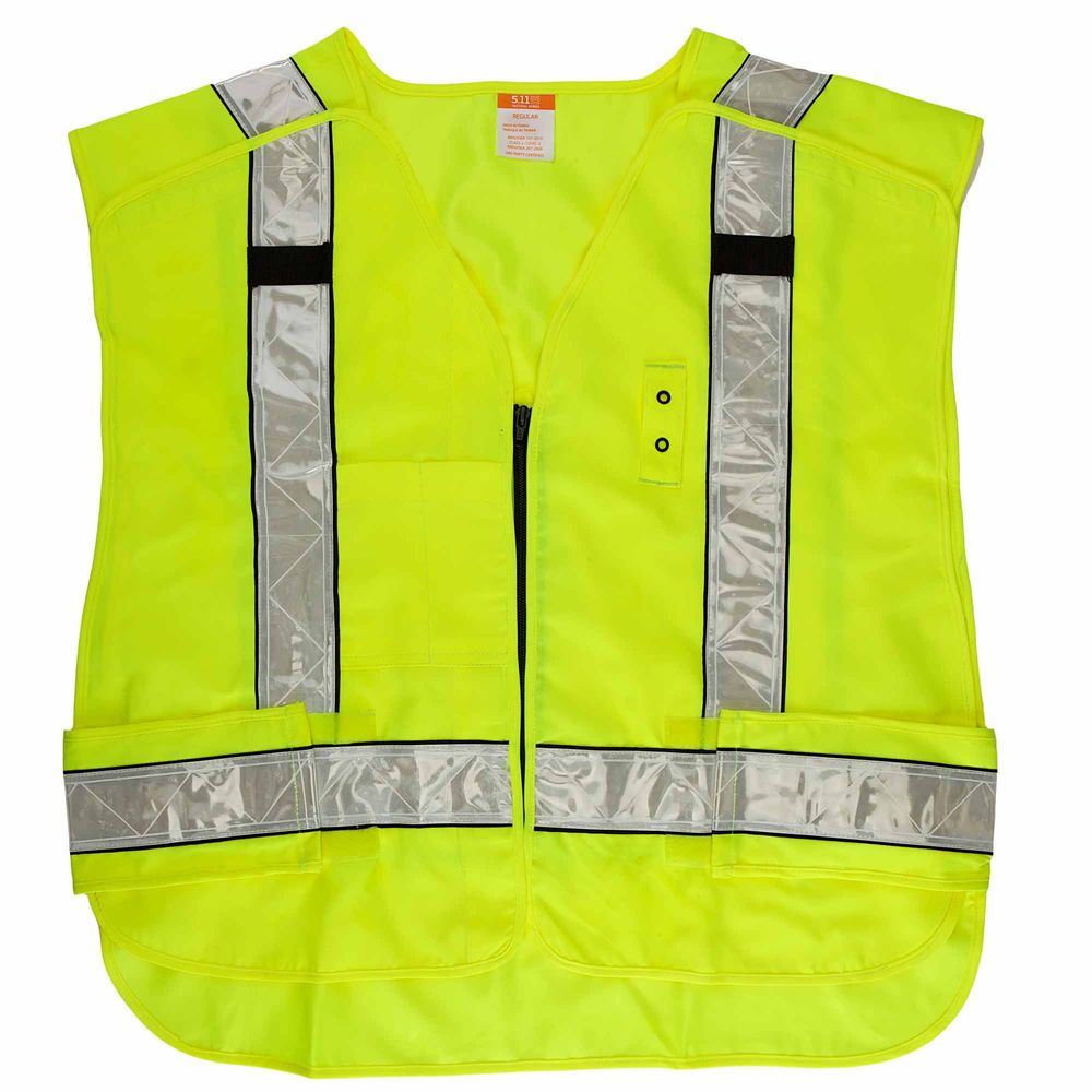 Meets the requirements of ANSI/ISEA 107-2015 Type R & P, Class 2 on high vis side 3M reflective tape Integrated badge tab Weather resistant polyester Radio Mic Loops Front Pockets 5 Break Points: shoulders, center, side seams Sized to Fit Over Outerwear and Bunker Gear Adjustable Side Tabs