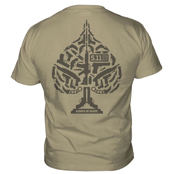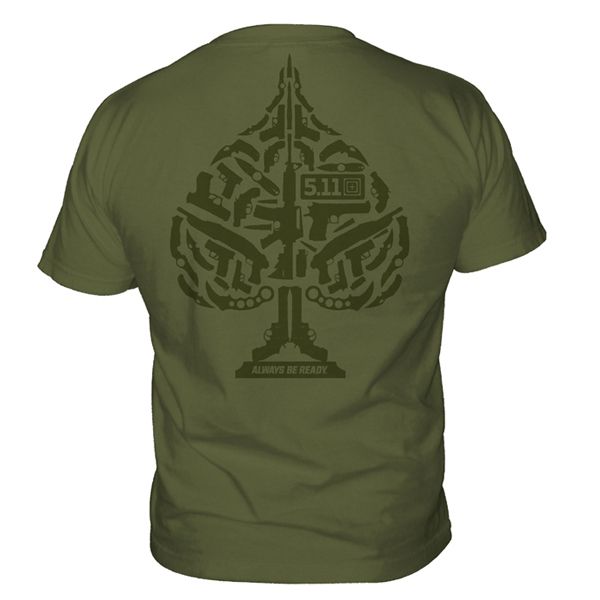 The Ace of Blades T-Shirt from 5.11 Tactical lets you express yourself in comfort and style. Built from 5.5 oz. 100% soft-spun cotton for superior breathability, our Ace of Blades T-Shirt is preshrunk to size and offers a generous fit, providing a clean and comfortable fit that looks and feels great. Tapered neck and shoulder line enhancements ensure complete mobility and full freedom of movement, preventing bunching at the underarm or waist. Each tee features premium quality graphical enhancements with anti-fade characteristics to ensure that your new Ace of Blades T-Shirt remains bright and colorful, wash after wash.
