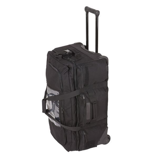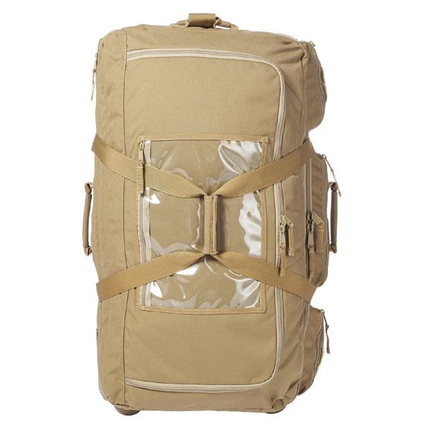 Best rolling duffel value on the market Moisture and weather resistant Extendable roll handle Ultra-durable 1600D nylon Four external carry handles Rigid frame for stand-up accessibility Roll-away dividers offer custom storage options Heavy duty oversized wheels Four external storage pockets Adjustable high impact locking clasps Hook and loop nametape and flag patches Integrated ID Window 28.75” H x 15” L x 2” D main compartment upper 28.75” x 15” x 10.25” main compartment lower 7.25” x 10.25” x 0.875” right side pocket (x2) 11.25” x 10.25” x 0.875” left side pocket 28.75” x 10.25” left side flat pocket 12.75” x 9.75” flat document pocket 5514 cubic inch / 90 liter total capacity Reinforced bottom corners and skids
