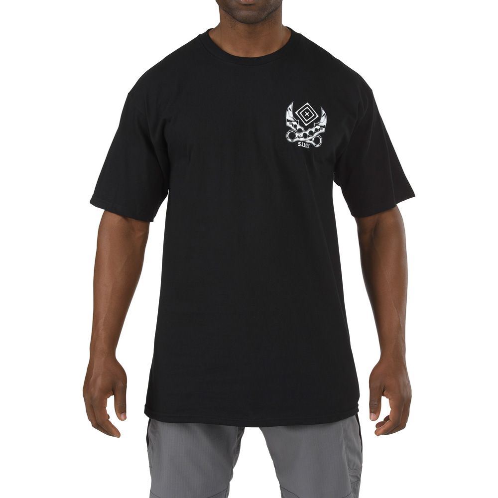 The Tarani T-Shirt from 5.11 Tactical lets you express yourself in comfort and style. Built from 5.5 oz. 100% soft-spun cotton for superior breathability, our Tarani T-Shirt offers a generous fit, providing a clean and comfortable fit that looks and feels great. Tapered neck and shoulder line enhancements ensure complete mobility and full freedom of movement, preventing bunching at the underarm or waist. Each tee features premium quality graphical enhancements with anti-fade characteristics to ensure that your new Tarani Tee remains bright and colorful, wash after wash.