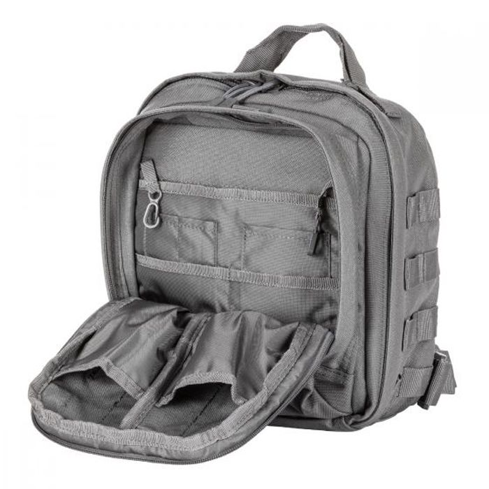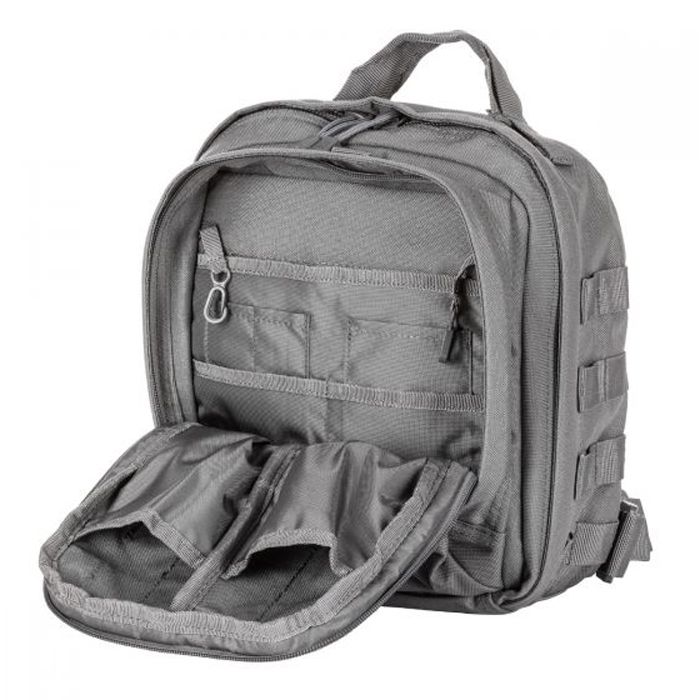 The 5.11 Tactical RUSH MOAB 6 Sling Pack is made of 1,050-denier nylon with a water-resistant coating and features multiple internal and external organization pockets, including a hidden pocket. The sling pack's Tier System connections let you easily connect/disconnect the pack to other RUSH packs, DC rollers and bags with a web platform. The ambidextrous carry system and a Grab-and-Go handle furtherly add to its reliability.