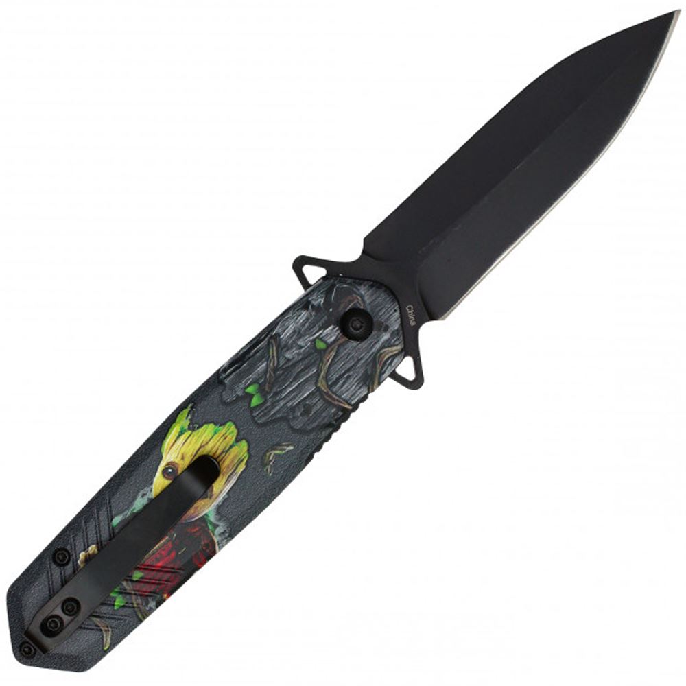 A folding knife with a distinctive aesthetic, available in two unique designs. The 3.5-inch steel blade provides a sharp and reliable edge for various cutting tasks, while the 4.5-inch handle ensures a secure grip.