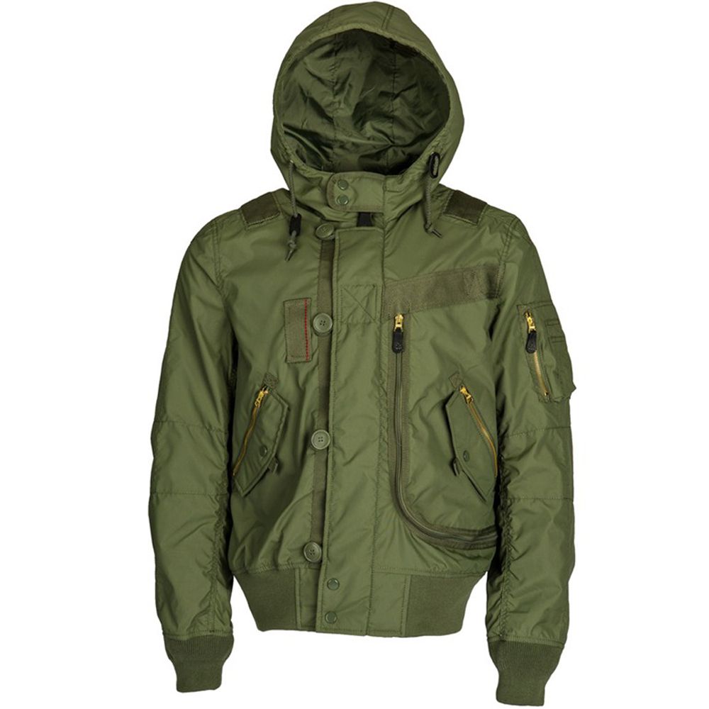 This men’s utility jacket features the Alpha wings screen print on the back neck area. The Helo bomber has two zip-close and snap pockets, two interior welt pockets, and Alpha’s signature zippered utility/pencil pocket on the sleeve. Features knit cuffs and waistband This men’s flight jacket has a standard fit.