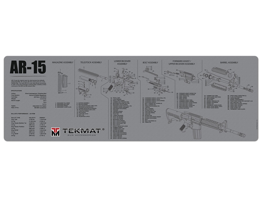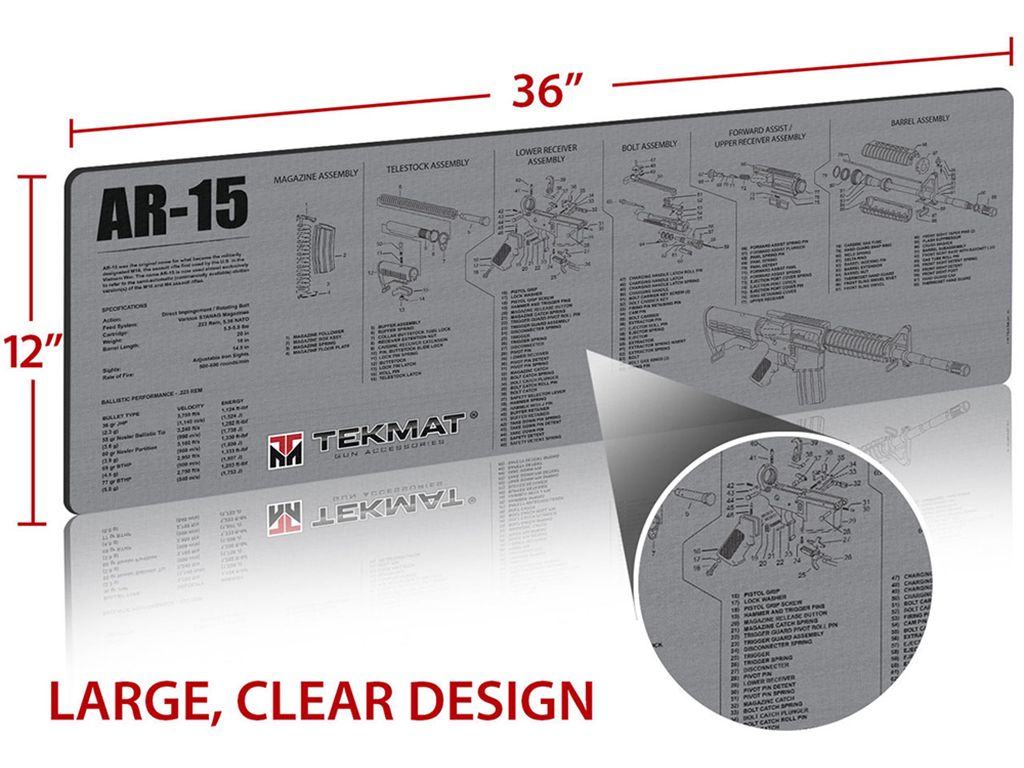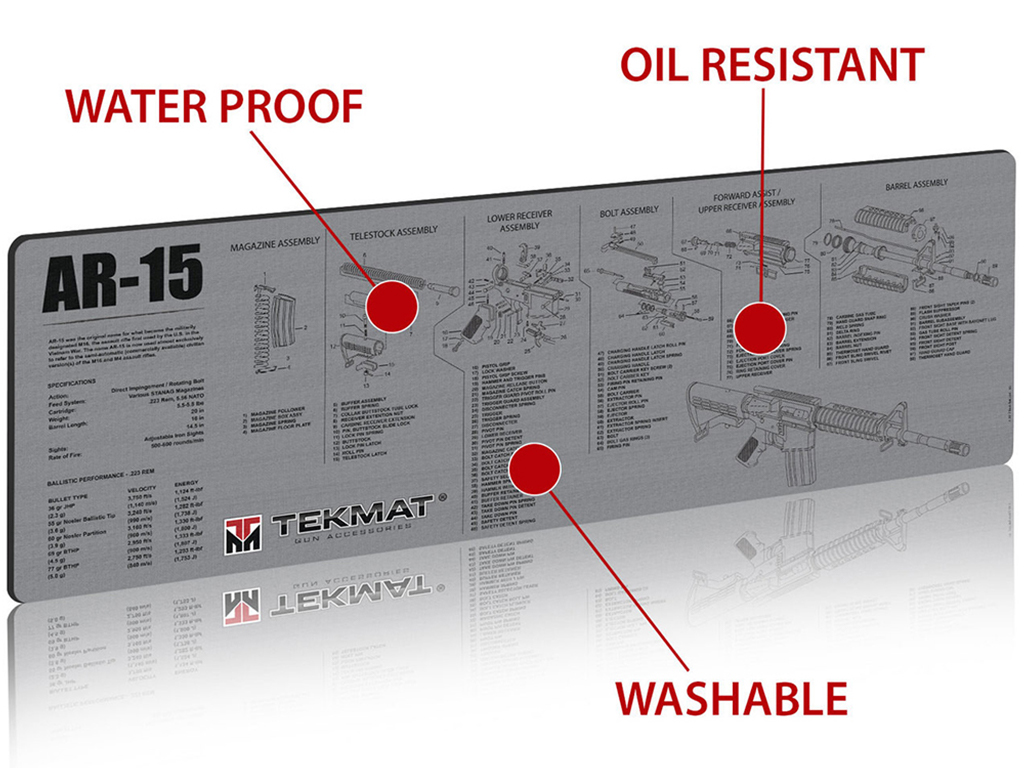 Keep your rifle maintenance clean, organized, and fully protected with the TekMat AR-15 Gun Cleaning Mat. Built with premium materials and detailed reference graphics, this oversized work surface is the perfect addition to any AR owner’s cleaning kit.