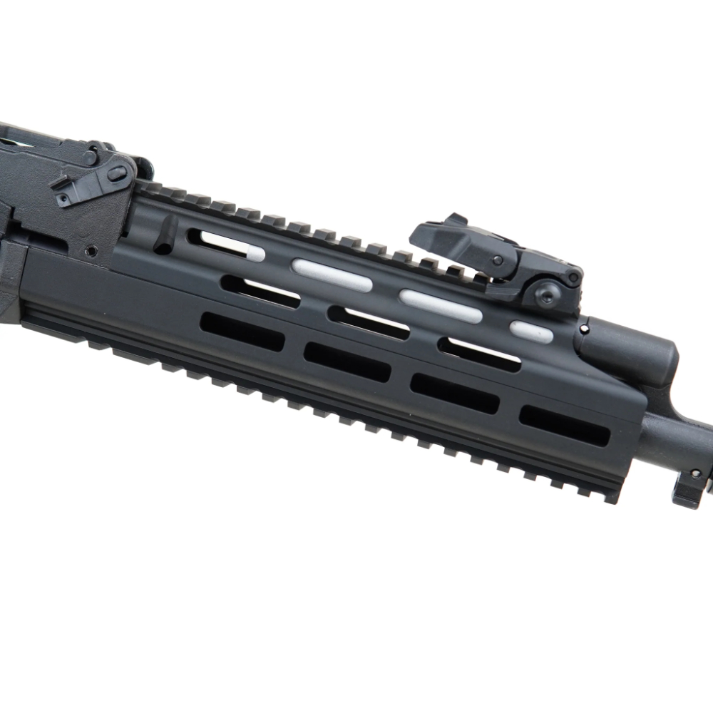 Meet the latest innovative version of the traditional AK Airsoft Series. This revised version has plenty of quality-of-life features to offer you and comes with original markings for added authenticity. Changes like an M-LOK handguard assembly with a 20mm Picatinny rail interface, ergonomic pistol grip, and a fully adjustable stock greatly improve its aesthetic and make it way more functional as compared to older AK versions. To match its mighty appearance on the inside is a V3 gearbox that simply allows it to deliver great power and performance right out of the box, especially with handy features like Quick Spring Change and a micro-switch trigger.