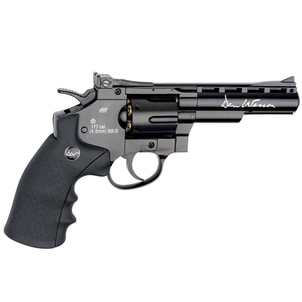 A well-balanced, duty-style 4” Black revolver licensed by Dan Wesson, it offers the best combination of accuracy with a comfortable size. It has authentic markings and a individual serial number stamped into the frame. The revolver features a double action trigger system and adjustable rear sight for extra realism and accuracy. The Dan Wesson revolver is made of metal except for the ergonomic grip constructed in hard ABS plastic. The 12g CO2 cartridge is stored in the grip and is easily accessed by sliding the grip back – easy-load style. Each of the 6 cartridges holds one 4.5mm BB and is placed in the metal cylinder that rotates as each round is fired. The revolver comes with speed-loader, attachable tactical rail and 6 cartridges.