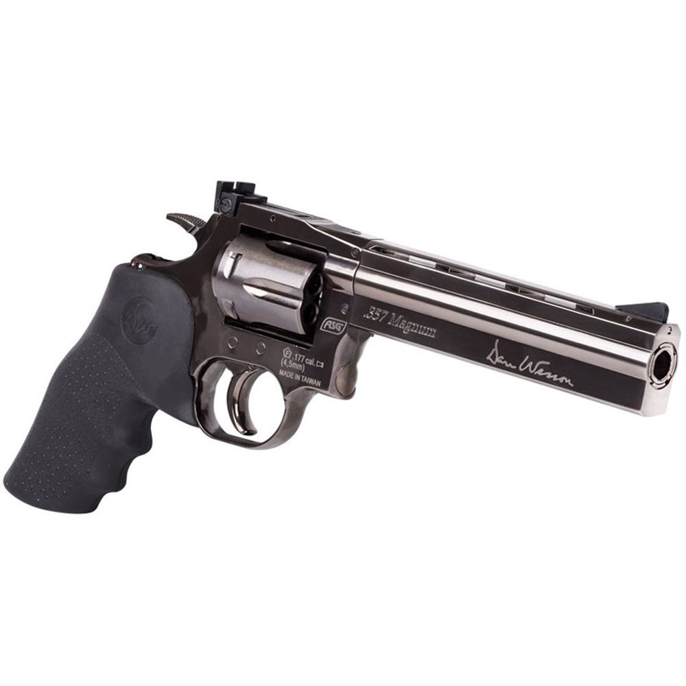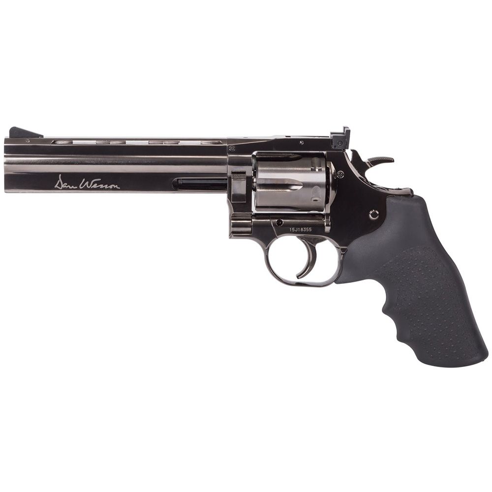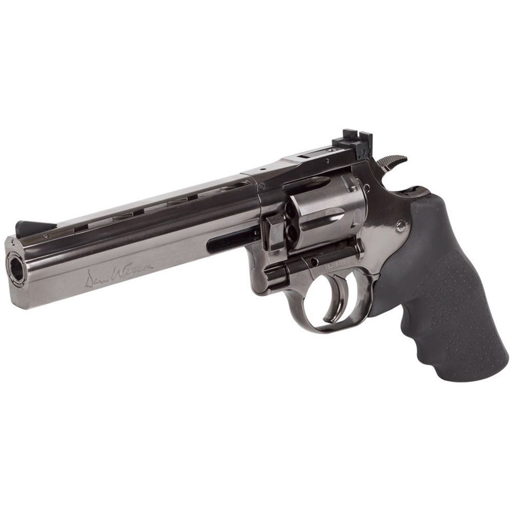 For a classy shooter look no further than the Dan Wesson 715 Lead Pellet Revolver. Its steel grey full metal construction is finely detailed to be an accurate replica of the real gun. The 6 inch barrel comes with a vented upper rib for attaching an accessory rail to make this traditional revolver customized for you.