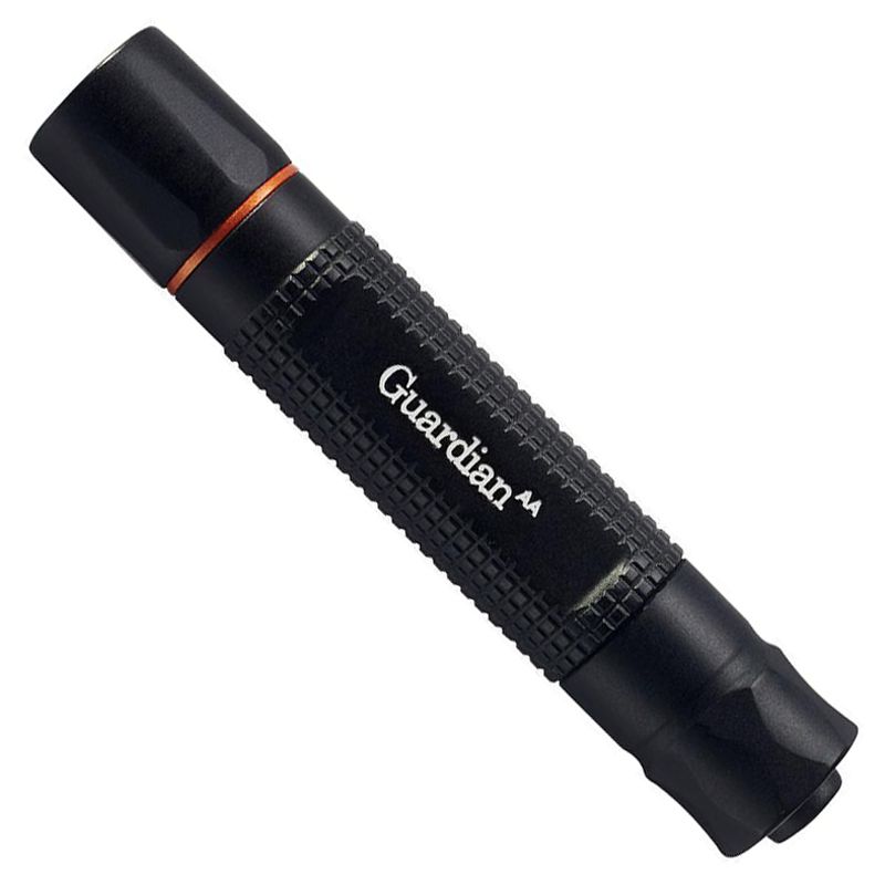 The tiny but potent Guardian was designed as a pocket-sized backup light for law enforcement, with the same robust construction and materials as our full-sized duty lights. A single AA battery drives an impressive 130 lumens of bright, white light through its top-of-the-line LED. Like other ASP tactical lights, the Guardian is machined from 6061 T6 aerospace aluminum, hardcoat anodized in matte black, with a precision-knurled grip all around the barrel. Premium components include a Cree XPG2 LED, gold-plated connectors, polished aluminum reflector and optical glass lens. The positive, tactile rear button switch is instantly accessible, quick and quiet. A simple, half-push of the button activates the light in intermittent mode, a full push and click activates constant-on. A quick "double-tap" activates a low, 15 lumen light level. Includes high-performance ASP lithium AA battery.