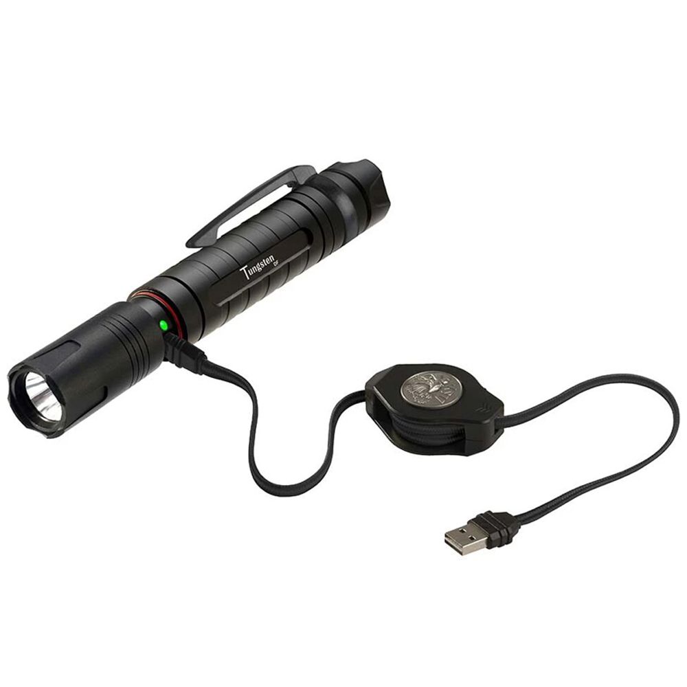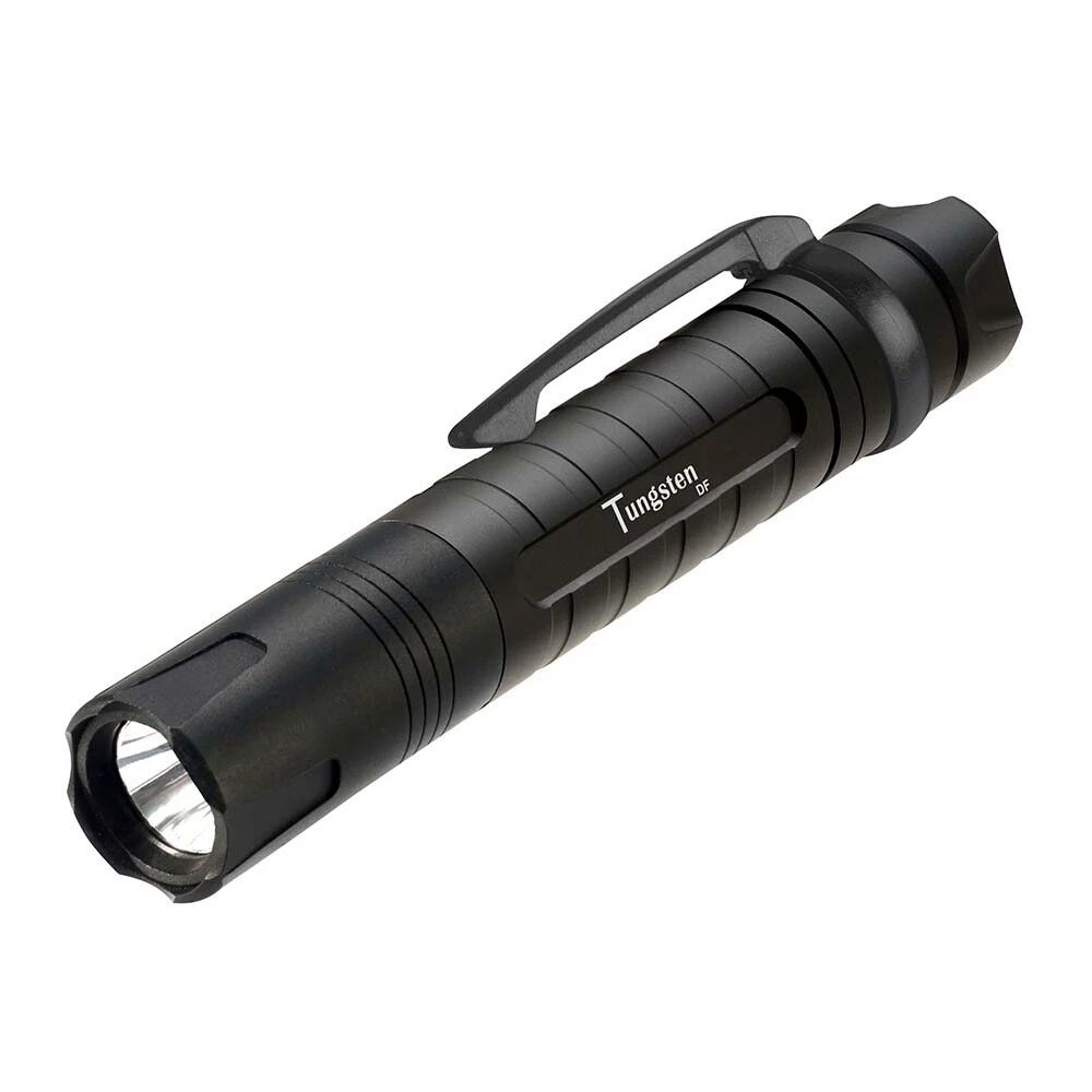 ASP Tungsten DF comes with a high-performance ASP 18650 rechargeable battery, Link battery storage case, retractable charging cord, wall adaptor, car adaptor, removable pocket clip, and zippered ballistic travel case.