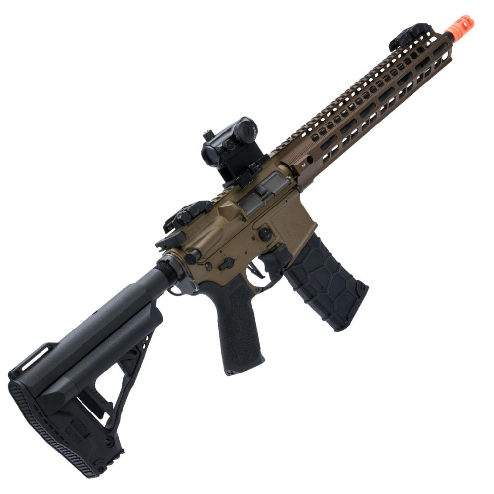 VFC has been making high-end guns for a very long time and this is the latest evolution of their M4-style guns. Covered in tactical rails, this one has plenty of space to accommodate a variety of your accessories, both M-LOK and RIS. Its innovative QRS pistol grip offers ample dexterity and ease of handling. The QRS stock is an adjustable polymer one and the integrated sights also allow players to quickly and accurately zero in their targets without the need of an additional optic accessory. To match its mighty appearance, on the inside is the latest V2 Gearbox with MOSFET, quick spring change as well as many upgraded parts, leaving absolutely no stone unturned to offer airsofters a spectacular AEG, right out of the box.