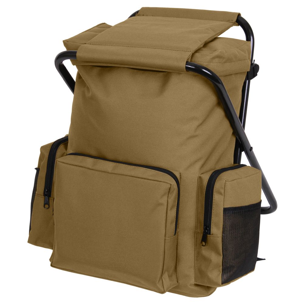 This product has a stool which changes into a travel backpack. The stool is made up of 600d polyester and comes with steel frame. The dimensions of this stool are 18 x 13 x 9 inches. The backpack is constructed with 440d nylon fabric with rubberized lining. The dimensions of the backpack are 17 x 10 x 5 inches. It has 3 zipper pockets and one big pocket. The backpack which comes in this product is optimal choice to store all your luggage, sports gear etc. It has an adjustable shoulder strap. The stool has sturdy legs that help to prevent sinking inside the ground. It is very much useful in hunting and camping.