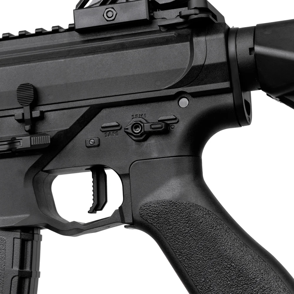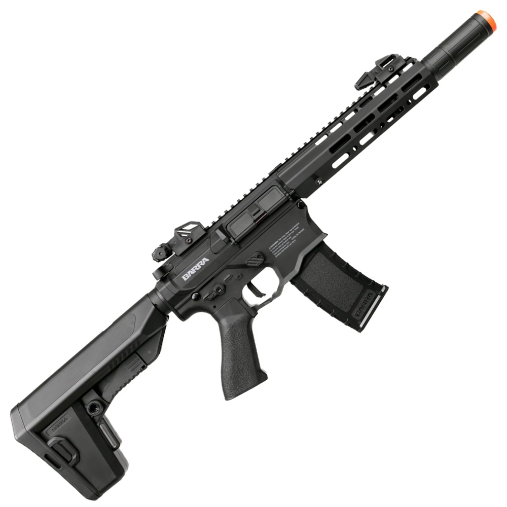 The Barra 400 Full Auto Electric Airsoft Rifle is a high-performance AEG built for players who want accuracy, durability, and fast action on the field. Designed with an AR-15 inspired look, it features a full metal gearbox for smooth operation, ambidextrous controls, and M-LOK compatibility for adding tactical accessories. Whether in semi-auto or full-auto mode, this rifle delivers precision and reliability. Complete with an included LiPo battery, charger, and a 300-round magazine, it’s ready for action right out of the box.