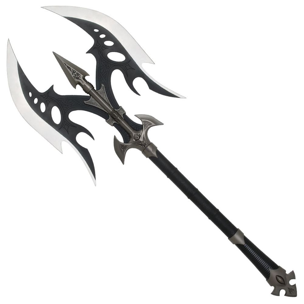 The fiercest of the Black Legion were the Barumen Axemen of Lokonia. These were the main vanguard of The Dark One’s army, made up of the largest and most ferocious of Barumen soldiers. They were heavily armored in plate steel and leather and each wielded two great Battle Axes which they used with deadly skill. The Battle Axe was one of the few weapons forged by the Dark Elves in mass, each one being shaped nearly the same. Every Axeman carried two identical battle axes, with hooked and curved blades, leather grips and skull crushing pommels. The Black Legion Battle Axe could be used to chop like a traditional axe but could also be used to hook and pull an enemy. The Battle Axe could be thrown with deadly precision, and its twin points were devastating. The mere sight of this weapon caused many to retreat in battle rather than face its terrible edge.