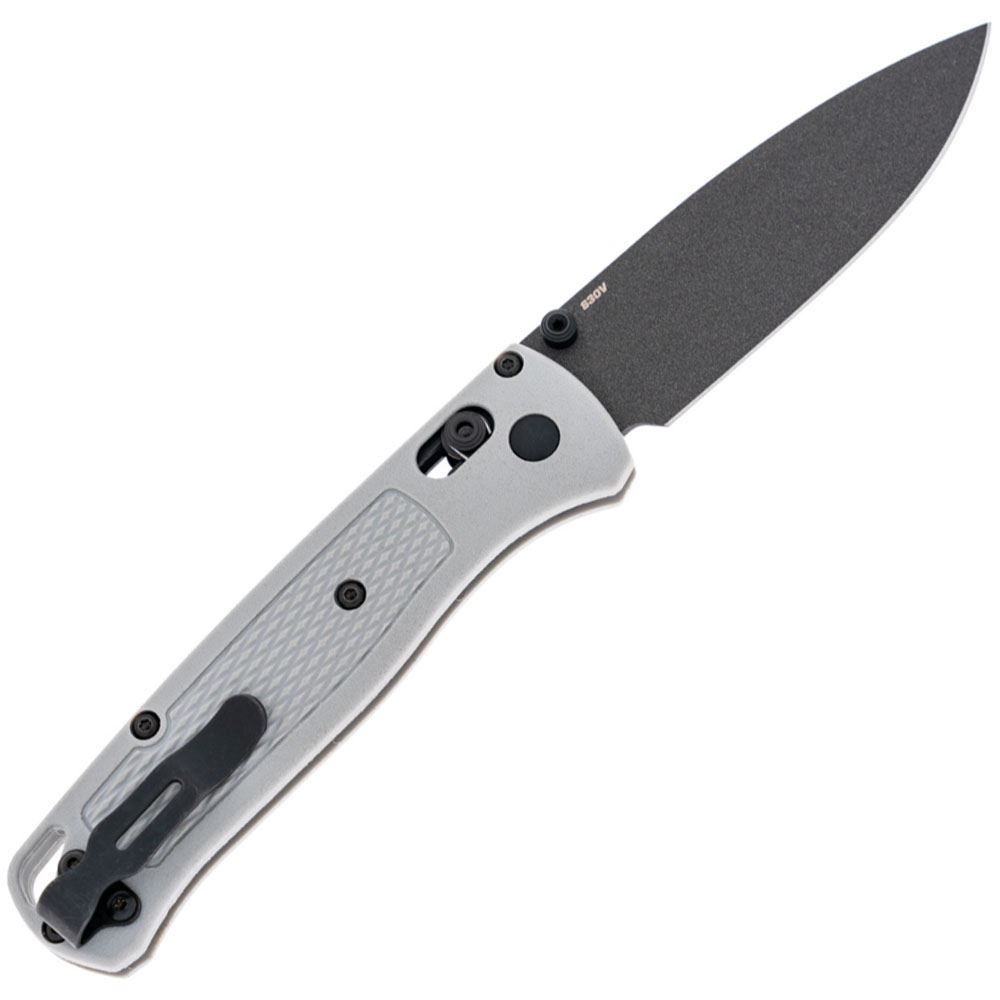 The Benchmade Bugout will always have your back whether you're exploring the urban jungle or roaming through the wildness of the backcountry. This contemporary everyday carry utility knife is small, lightweight, and incredibly dependable. The sturdy drop point blade snaps into place utilizing Benchmade's unique AXIS lock after opening easily with ambidextrous thumb studs. The Bugout offers a wide variety of slicing and piercing uses because of its broad, sweeping belly, swedge, and plain edge. Comfortable and covert pocket carrying is made possible with a smooth Grivory handle and a short deep carry clip.
