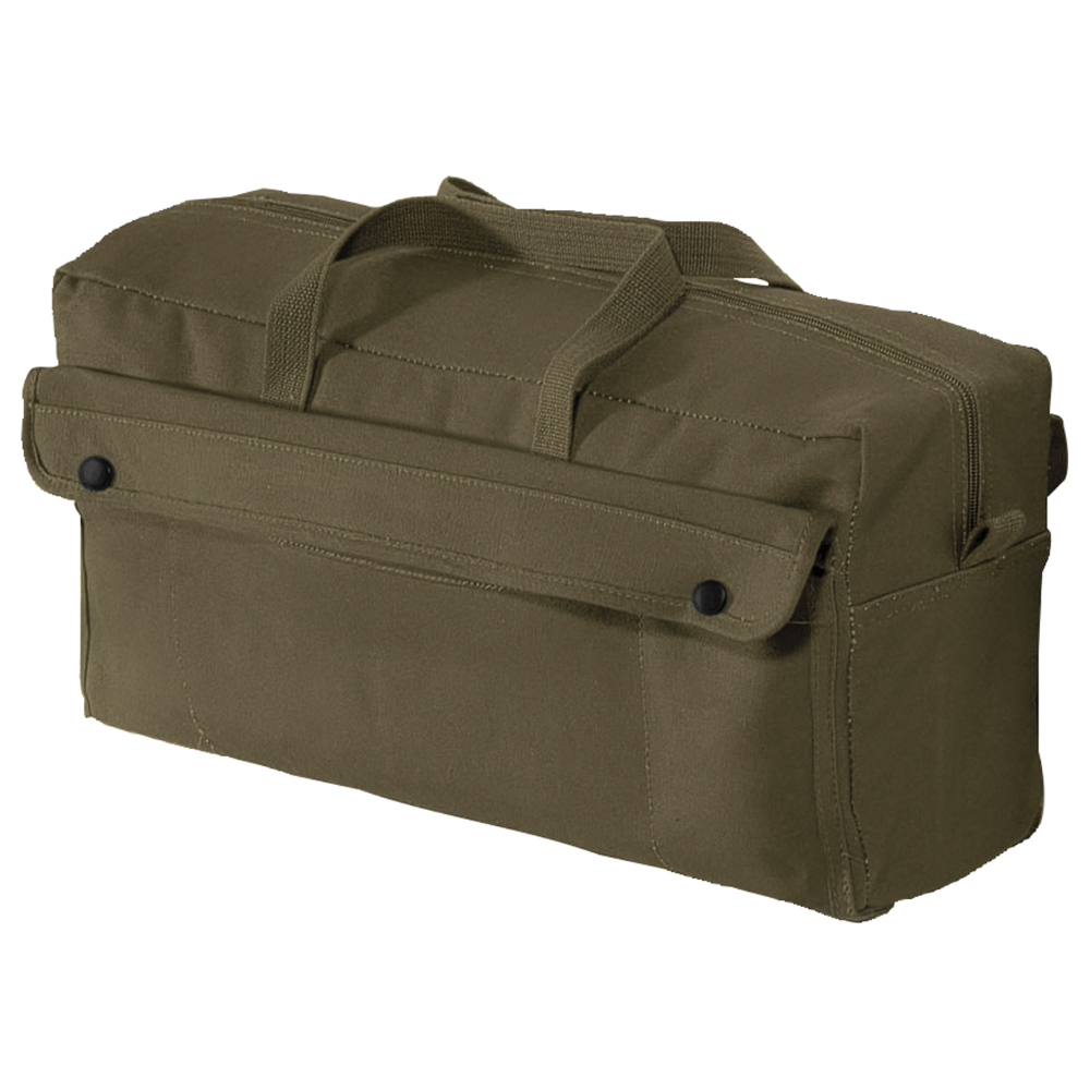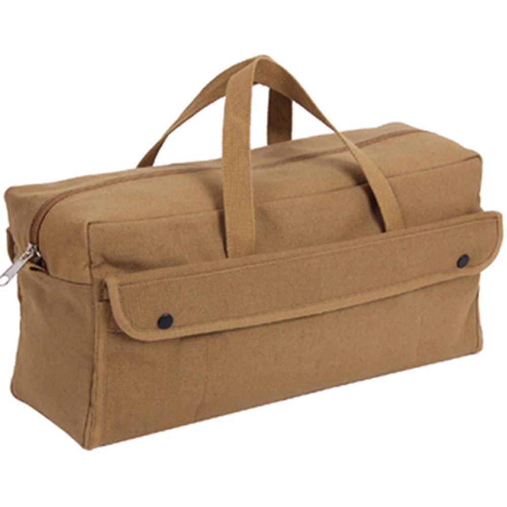 Keep all your gear in one place with the Canvas Jumbo Mechanic Tool Bag, a spacious and rugged solution built for professionals and DIYers alike. Made from heavyweight cotton canvas, this tool bag offers exceptional durability while maintaining a classic military-style look. Inside, you’ll find twelve internal organizer pockets and two external snap pockets for optimal storage and quick access to your essential tools. With its tough web handles, hard bottom, and polyester zipper closure, this bag ensures long-lasting reliability and comfort during transport. Whether you’re a mechanic, contractor, or craftsman, this is the tool bag that works as hard as you do.