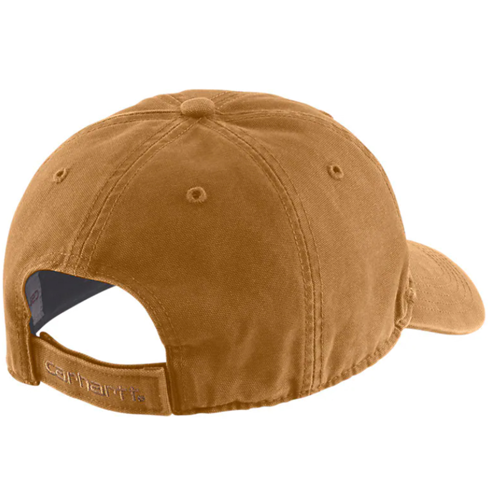 Finished with a leatherette Carhartt label sewn on the front, this cap exudes quality craftsmanship and timeless elegance. Elevate your headwear game with a cap that delivers on both style and performance.