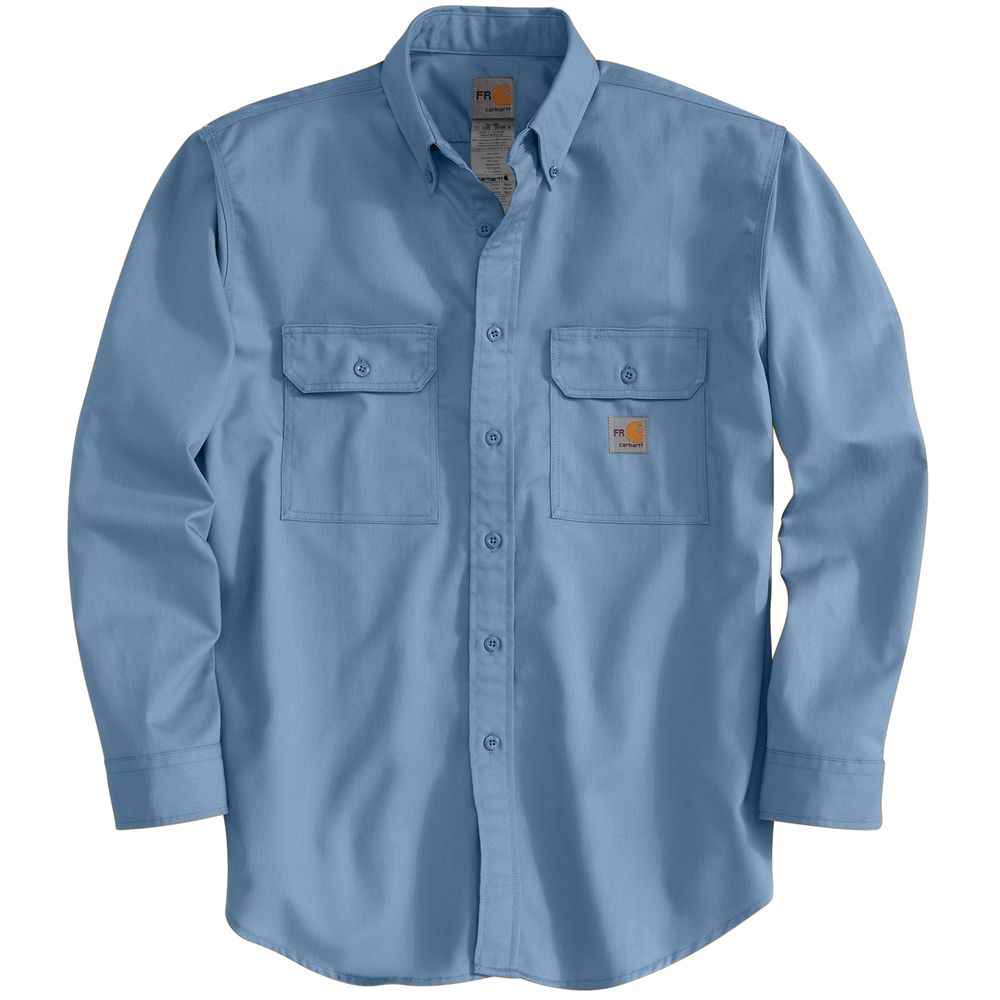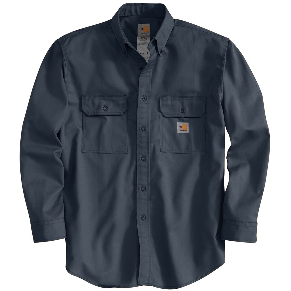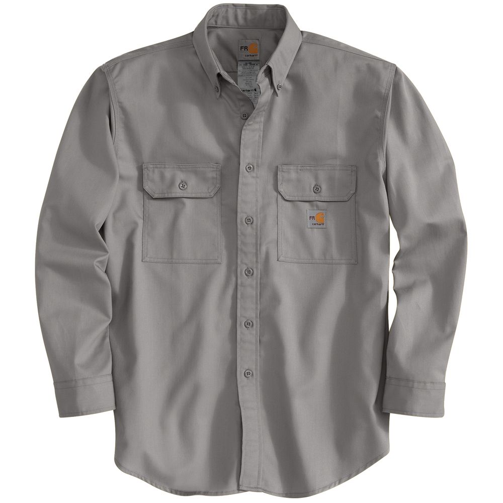 7-ounce, flame-resistant twill Two chest pockets with flaps and button closures Flame-resistant melamine buttons Button-down collar Triple-stitched main seams