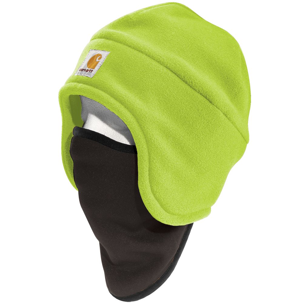 7-ounce. 100% polyester fleece Mask: 6-ounce light weight stretch jersey knit, 98% cotton/2% spandex Fleece hat with pull down face mask for warmth Anti Microbial and wicking facemask