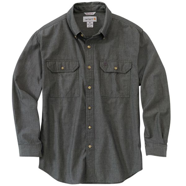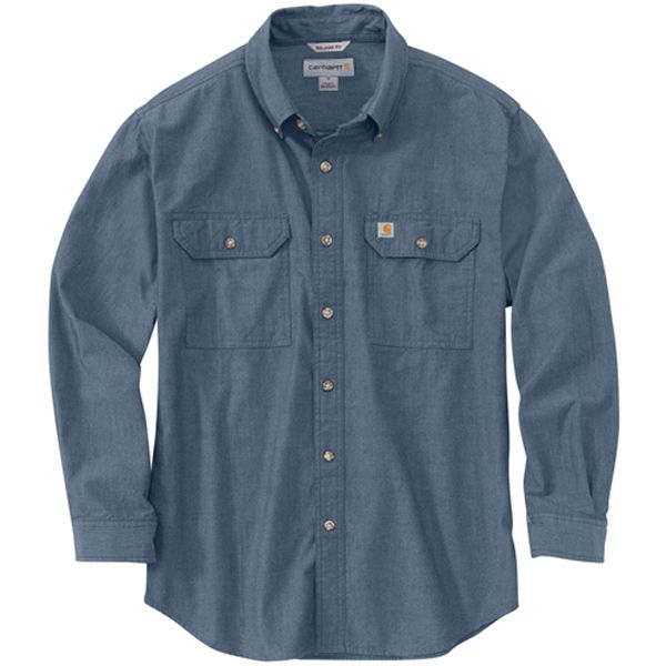 4.5-ounce, 100% cotton ring-spun chambray Garment washed for a soft finish and reduced shrinkage Button-down collar Two chest pockets with mitered flaps and button closures Two-button adjustable cuffs with extended plackets Shoulder pleats for ease of movement