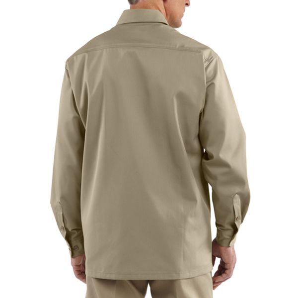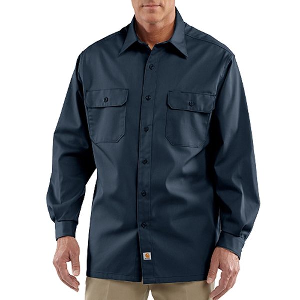 5.5-ounce, 65% polyester/35% cotton twill Wrinkle-resistant fabric Stain-repel-and-release finish Spread collar Two chest pockets with mitered flaps and button closure.