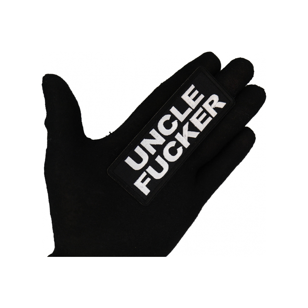 Uncle Fucker Patch measures 4x1.5 inches and is Embroidered in Black / White. The patch can be sewn onto Leather Biker Jackets, Vests, or Chaps. The patch can also be ironed onto Shirts, Hats, or Denim material such as Jeans. Features plastic iron on backing and clean laser-cut embroidered borders. Japanese-made iron-on glue requires a temperature between 270-290 Degrees Fahrenheit. Use a heat press for 30 seconds to adhere the patch permanently to your clothing. Using a regular household iron will probably not be as permanent as one hopes. If possible we recommend you sew on your patches for a more durable application. Never iron on patches to Leather or Nylon materials.