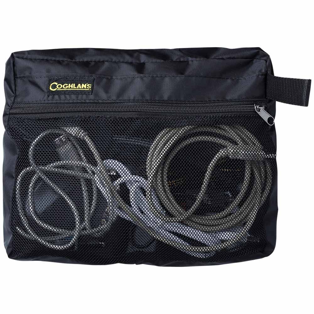 Nylon back with mesh front for ventilation and easy location. Includes hanger loop and zipper closure.