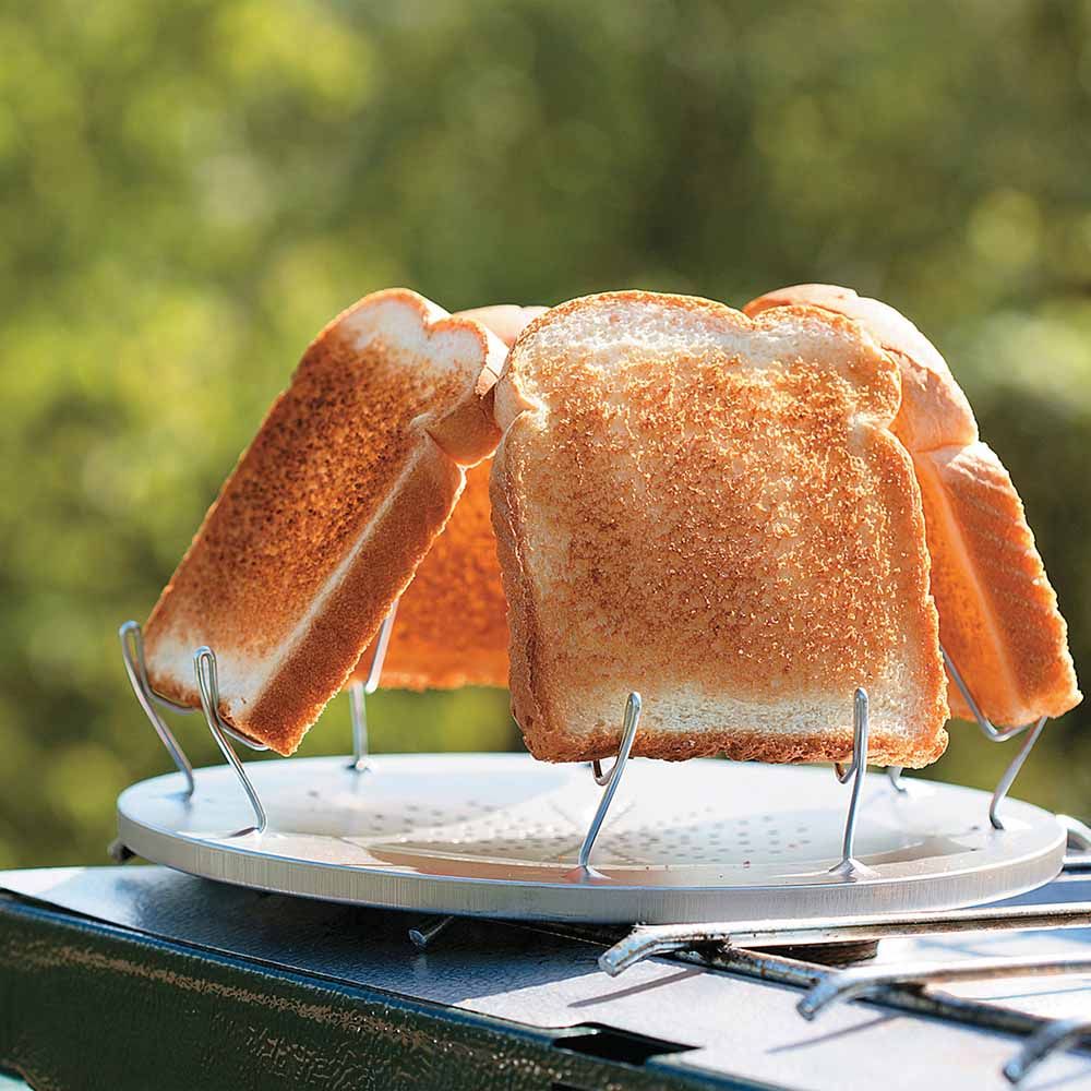 The original Camp Stove Toaster performs perfectly, toasting up to four slices at a time. Durable steel construction with coated wires fold flat for easy packing and will not rust.