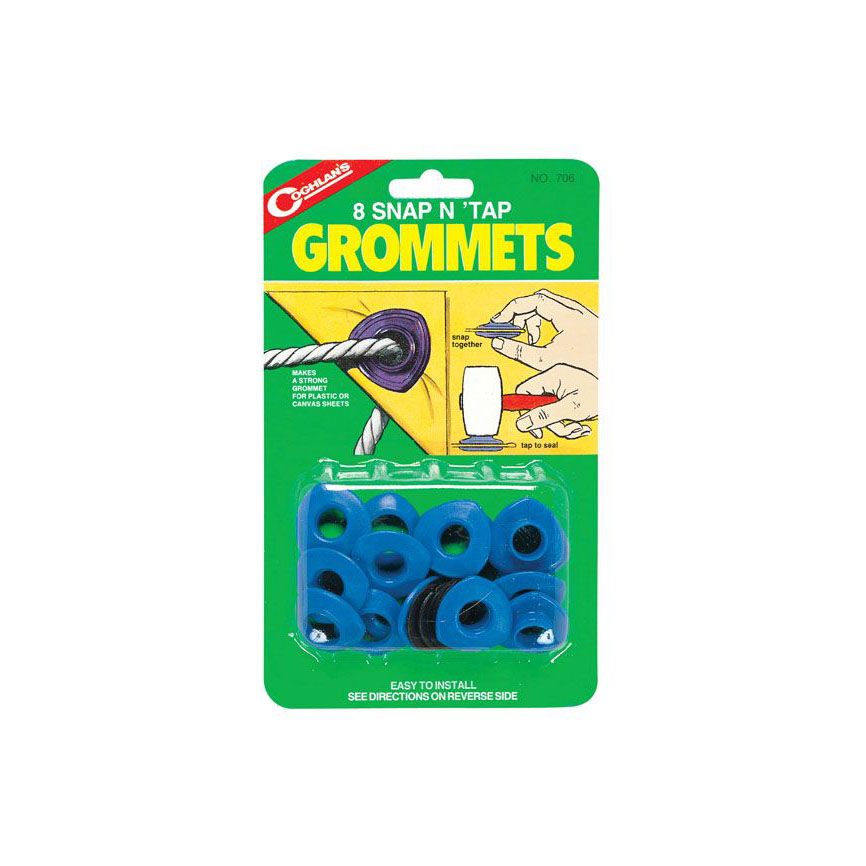 Cuts own hole in plastic sheets. Replaces missing grommets or add to ripped or torn tarps.