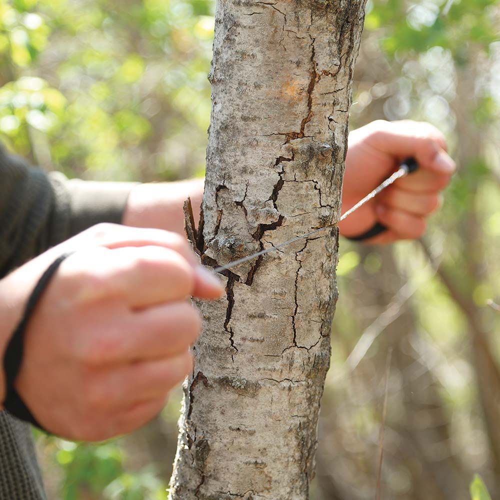 Cuts wood, plastic, bone, rubber or soft metal. Unique 8-strand design. Durable nylon wrist straps. Converts to snare by passing one wrist strap through the other. Safe to handle.