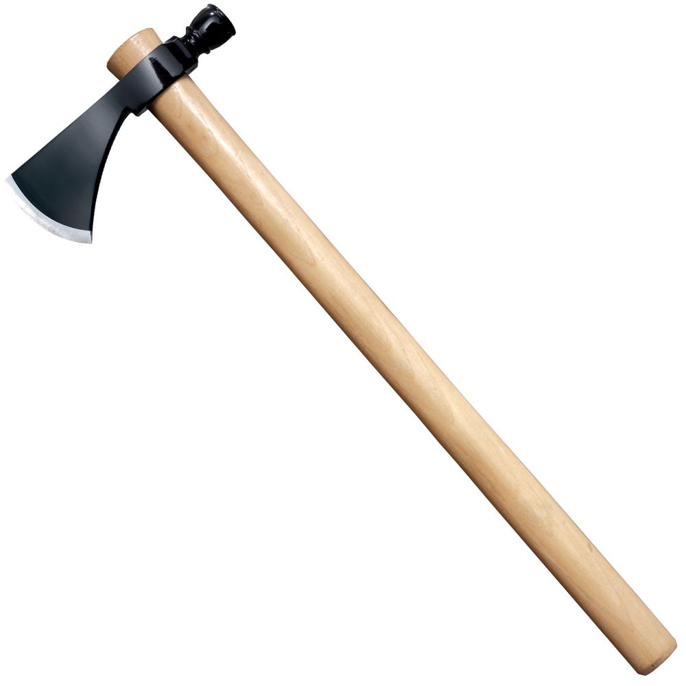 The Pipe Hawk Tomahawk from Cold Steel is precision forged from 1055 carbon steel. The Pipe Hawk offers a long, reasonably wide cutting edge and a solid, fully hardened hammer poll that's turned and ribbed to mimic a hollow pipe bowl. This tomahawk features a 19" hickory handle and weighing approximately 26 ounces- heavy enough to be brutally effective as a chopping tool and weapon. Plus its solid bowl will drive nails, spikes and stakes with the power of a framing hammer.