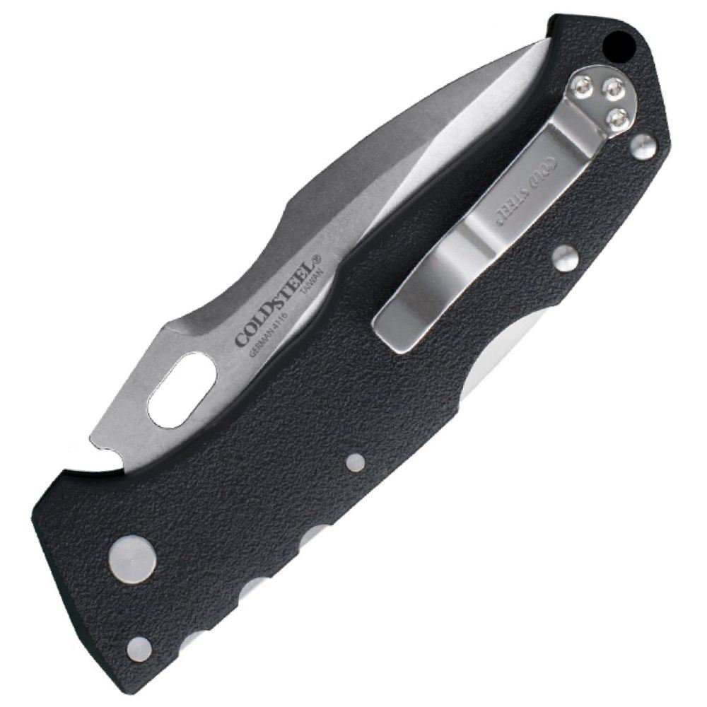 Cold Steel collaborated with custom knifemaker Andrew Demko to create the versatile Pro Lite Sport. This economic folder delivers the same standard of piercing strength and precision as all Cold Steel tanto knives, in a much more cost-effective package. The Sport model stands out from the other Pro Lite knives with a swedged drop point blade and thumb hole opener. A tactical black and blue GFN handle houses an ultra-tight tri-ad locking mechanism—another Cold Steel exclusive feature.