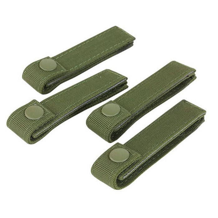 The 4 Inch Mod Strap set is designed to facilitate the attachment of modular accessories to your web gear, enhancing your setup's versatility and functionality. Each strap features a MOLLE-compatible design with a snap closure for secure attachment. Sold in a pack of four, these straps measure 4 inches long when closed, providing a reliable solution for integrating additional gear.