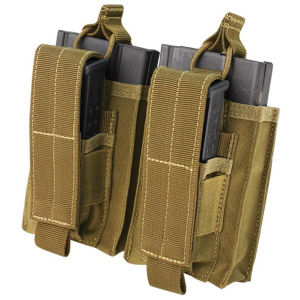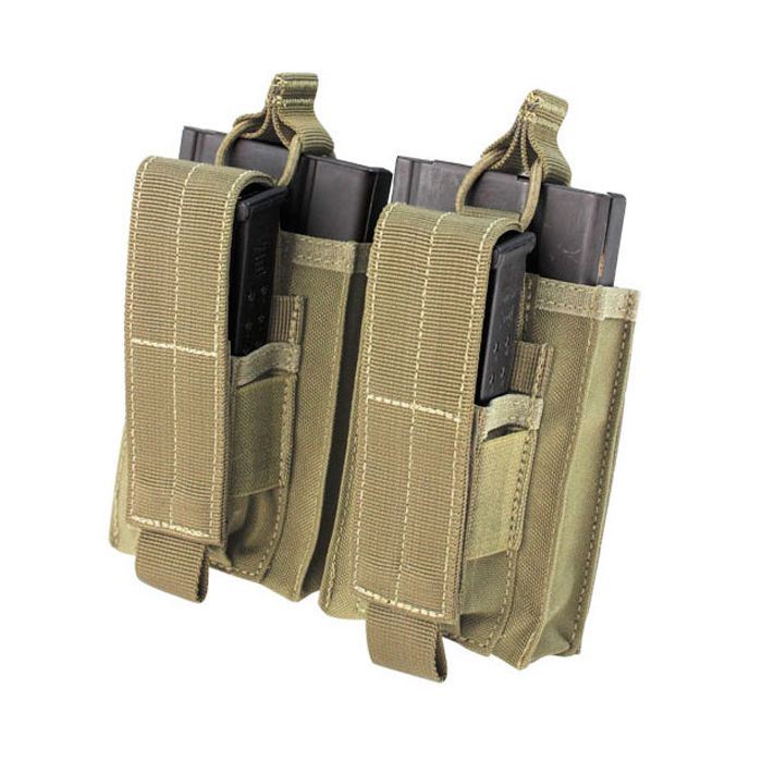 Get the best of both worlds with the Condor Double Kangaroo Mag Pouch. This innovative design allows users to store both M14 and pistol mags in one accessible pouch. Pouch includes adjustable hook and loop closures, and MOLLE compatible 6" MOD straps. Multicam pattern conceals wearer in the field.