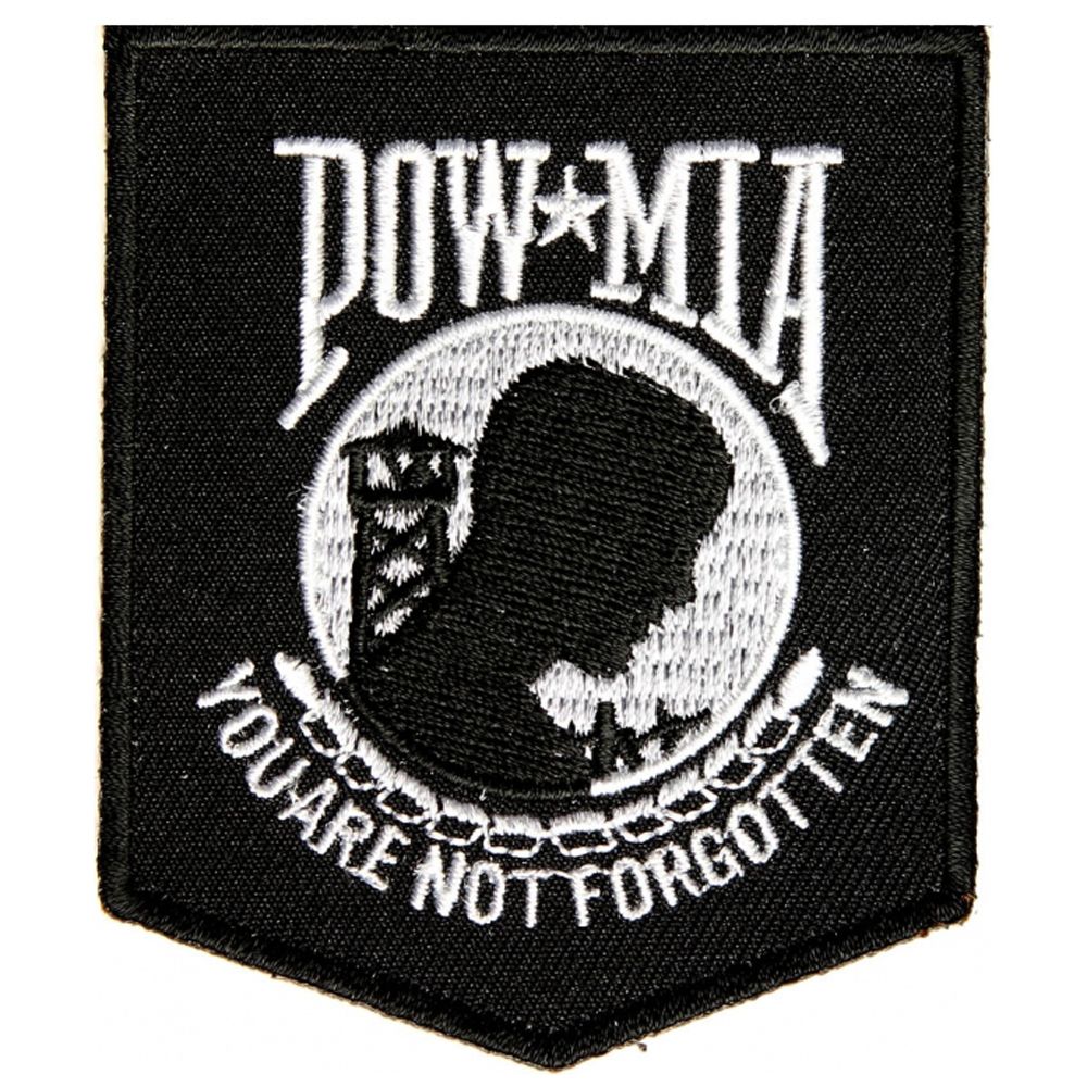 This is the POW MIA (Prisoner of War, Missing in Action) Patch featuring white embroidery on a black background. The patch features a symbol of soldier facing side ways with his head slightly tilted over a prisoner of war camp tower. The patch measures a perfect 2.5 x 3 inches and is ideal for your biker vest or jacket, as well as other biker accessories. You can iron on the patch to denim materials or sew them on to leather. There is plastic backing on the backside of the patch. These patches do not have hook backing, if you are interested in hook backings we do sell peel and stick hook backing that works very well on patches with plastic backing. You can also find various different color combinations of this POW MIA Patch at our online store.