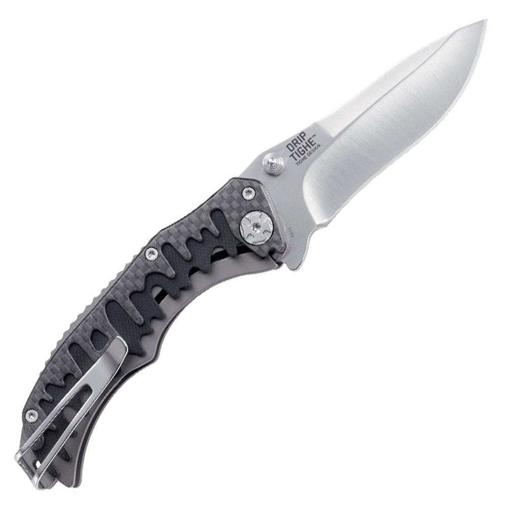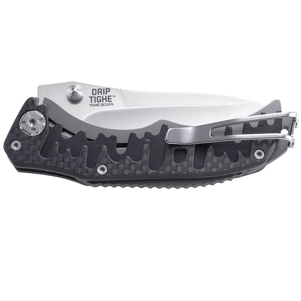 From his shop in Ridgefield, Ontario, Brian Tighe has secured his position at the forefront of the knife industry when it comes to both aesthetics and capability. The Drip Tighe™ sits exactly at that intersection. This solid everyday folder carries a versatile modified drop point blade with a sleek satin finish. The beauty is in the action. Push the thumb stud to open the blade a mere 30 degrees to engage the Outburst assisted opening mechanism. Once the internal spring is activated, the blade bursts fully open and sits snugly in place with a frame lock. When it’s not in use, the powerful spring holds the blade securely closed.