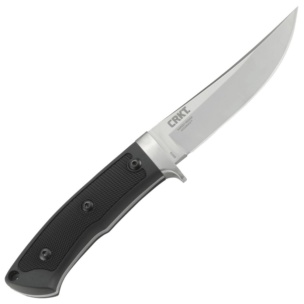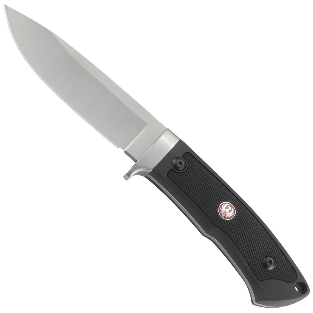 Shooting accuracy necessitates a knife like this—aptly named Accurate™—this full tang hunter is built by CRKT® to field dress with the best of them. A fixed-blade hunting knife - featuring a satin-finish plain edge blade; rubber over-mold, full-tang handle with inset Ruger® medallion; and reinforced nylon-fabric sheath.The Accurate is part of the exclusive Ruger knife line; the line includes designs for everyday carry, hunting, tactical uses and self-preparedness. The knives are crafted in varying sizes and finishes, with an assortment of blade edges. Developed by five master knife-smiths who combined their knowledge of the art with aesthetic details from Ruger firearms, the line offers unique knives with the important features that every good knife should have. These knives are purpose built to be durable and highly functional in the environments where Ruger customers will expect them to perform.