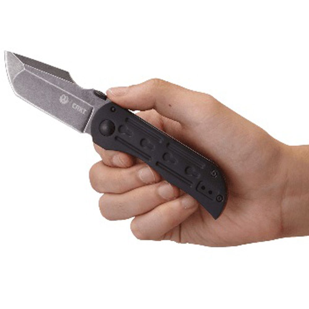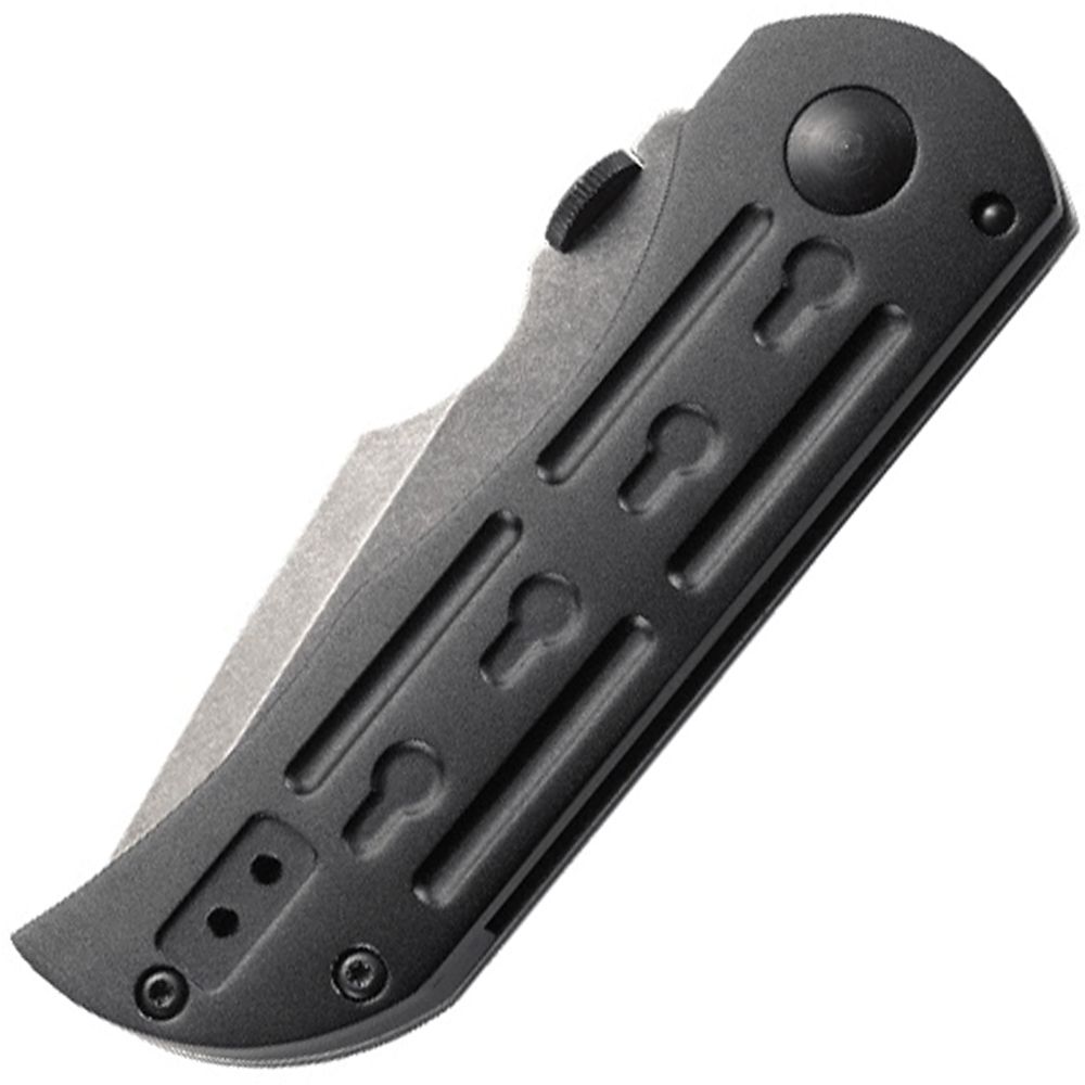 Black stonewash blade finish for that rugged lookThumb disc blade deployment optionDeep groove on back of the blade for maximum blade controlFrame lock secures the blade when open