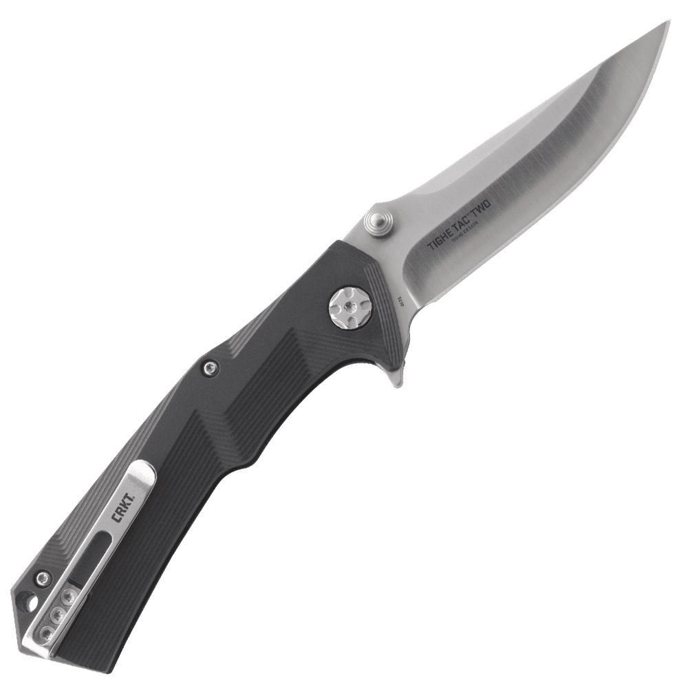 Strike up conversations with the CRKT Tighe Tac Two Tanto Blade. This handsome folding knife is an impressive piece from Canadian knifemaker Brian Tighe, artfully combining function and style. The satin finished blade opens up smoothly with the flipper and ambidextrous button lock, ready to take on any task. Contoured scaling on the glass-reinforced nylon handle provides secure grip in any type of weather. Pocket clip and lanyard hole included for easy carry.