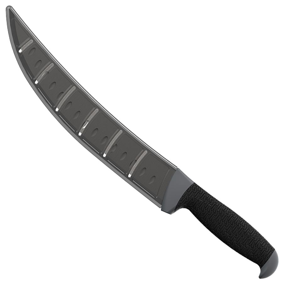 The handle is glass-filled nylon for durability and has a rubberized overmold with our exclusive K-Texture grip. The K-Texture pattern ensures you always have a secure hold—even in slippery conditions. For easy storage, the 12-inch Curved knife with K-Texture includes a blade protector.