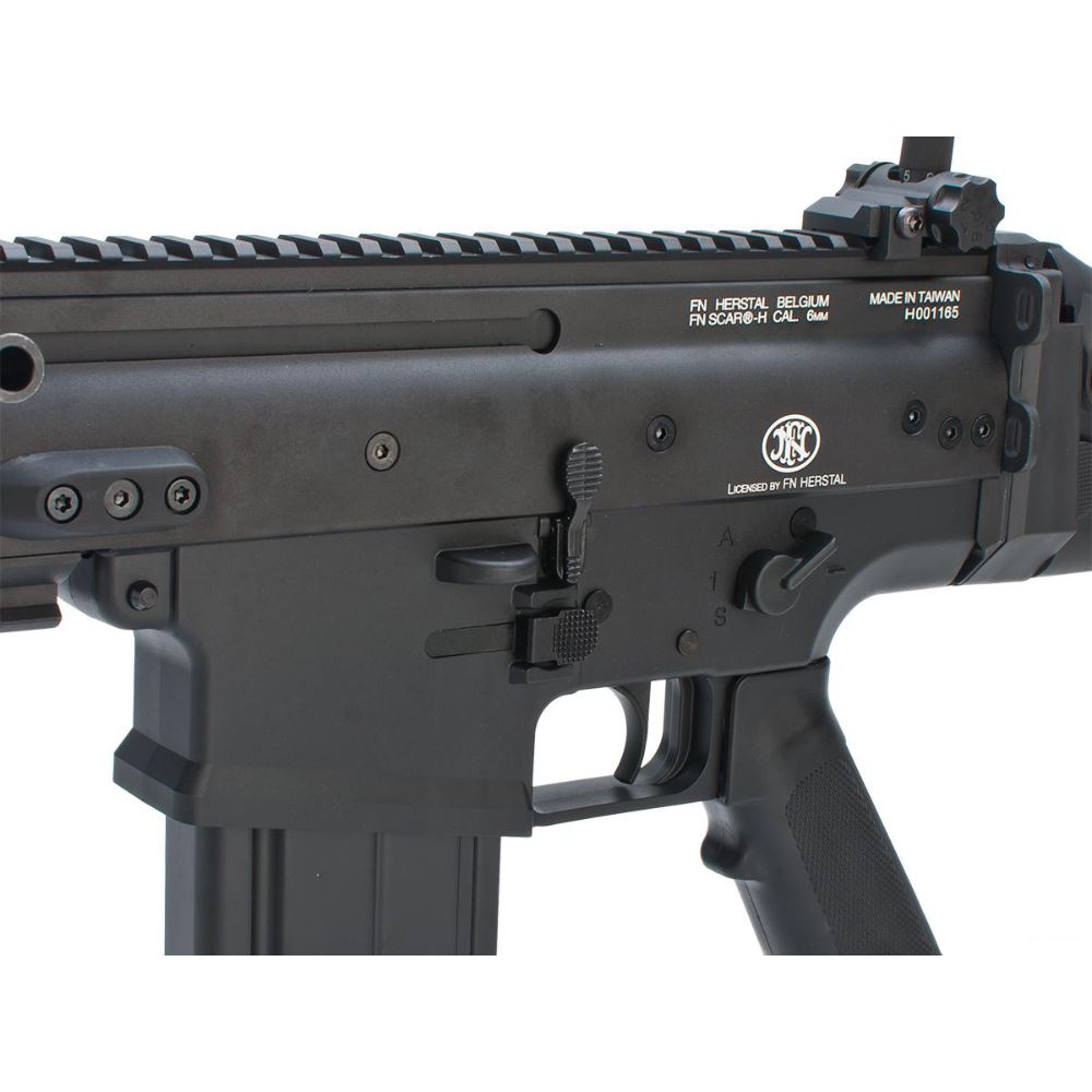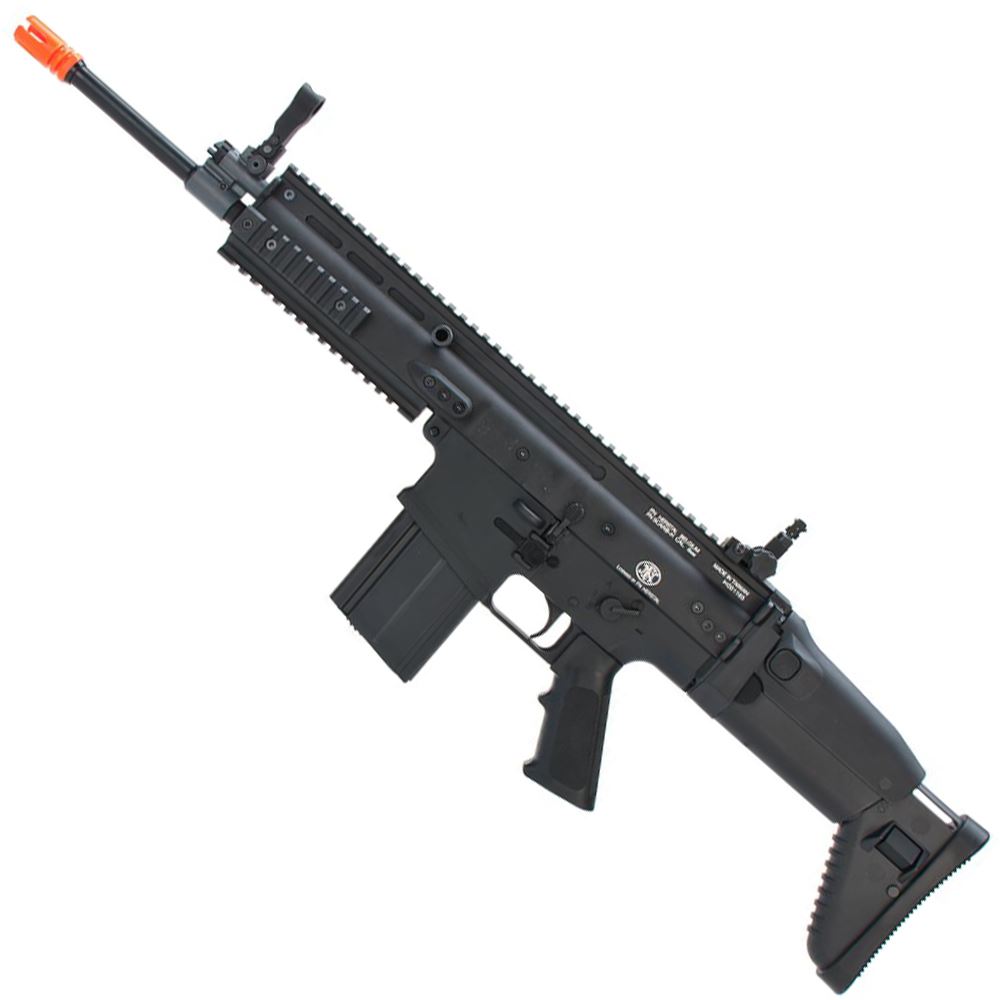 This rifle will blow you away with its authentic feel and realistic functionality, including a fully functional charging handle. The upper receiver is a one-piece CNC construction with a quail rail system to mount any MIL-STD-1913/Picatinny accessories. The FN SCAR also features fully ambidextrous controls that allow the operator to configure their rifle to their preference. The internals comes fully reinforced as well with lots of high performance parts and a V2 gearbox to ensure uncompromised reliability and high performance right out of the box. The 6-position retractable stock also makes it very adaptable to tight spot as well as different sized users.