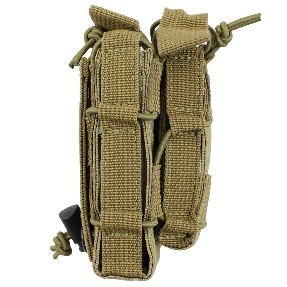 The Cybergun Cybergun Rifle and Pistol Mag Pouch is a versatile and reliable accessory to have in the field. This combo pouch fits both pistol and rifle mag types, and is designed to keep them securely in place with adjustable retention straps. The nylon canvas is stain resistant and comes equipped with MOLLE system mounts for direct gear attachment.