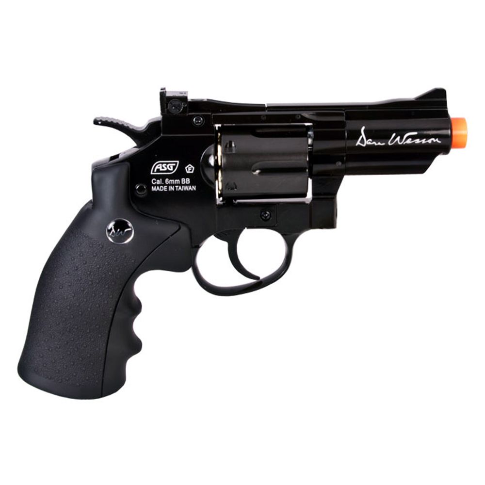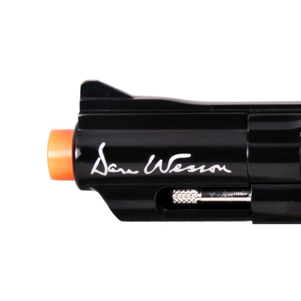 This 2.5” Black revolver licensed by Dan Wesson, offers realistic shooting fun in a handy size. It has authentic markings and a individual serial number stamped into the frame. The revolver features a double action trigger system and adjustable rear sight for extra realism and accuracy. The Dan Wesson revolver is made of metal except for the ergonomic grip constructed in hard ABS plastic. The 12g CO2 cartridge is stored in the grip and is easily accessed by sliding the grip back - easy-load style. Each of the 6 cartridges holds one 6mm BB and is placed in the metal cylinder that rotates as each round is fired. The revolver comes with speed-loader, attachable tactical rail and 6 cartridges.