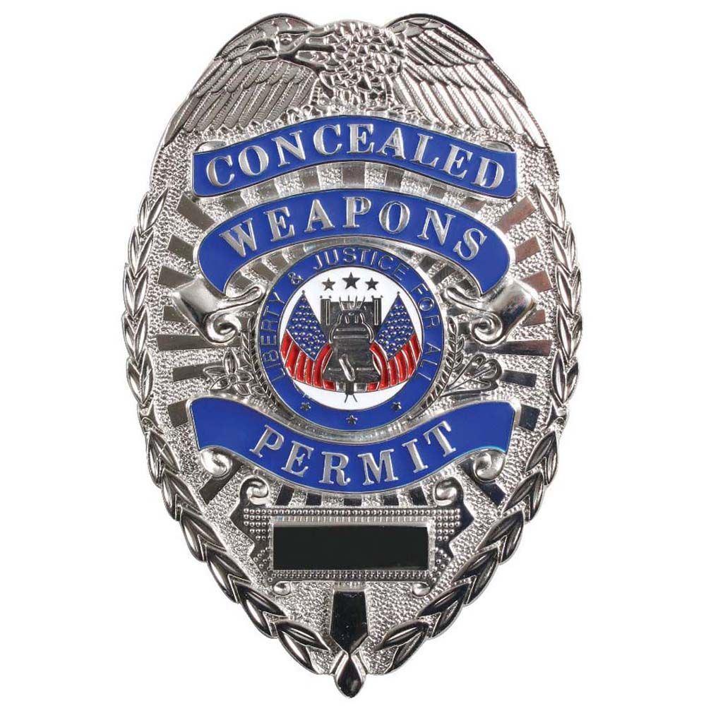 The DLX Badge-Concealed Weapons Permit is an authentic concealed weapons permit. The badge is made from a zinc allow which ensures durability and strength. The solid badge also has gold plating which gives it the signature look. This plating also protects the badge from rusting or any other external damage. The badge contains the words “Concealed Weapons Permit” along with an emblem and the words “Liberty & Justice For All” within it. The badge features some great detailing throughout which provides a great texture and feel to it. The glittering badge offers a great combination of style and durability.