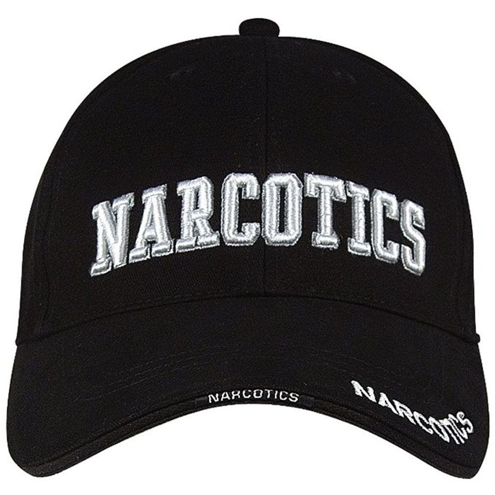 Rothco Deluxe Narcotics Low Profile Cap Features A 100% Brushed Cotton Twill With Raised 3-D Embroidered "Narcortics" Text On The Front Panel & Brim Just Has Text. The Cap Features A Sandwich Bill & Back Strap Insignia With Adjustable Hook & Loop Closure.
