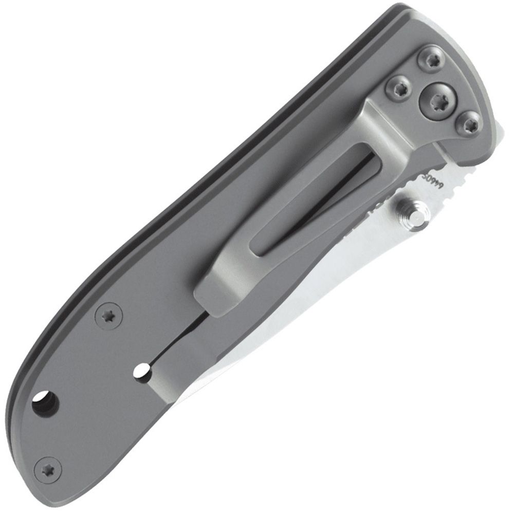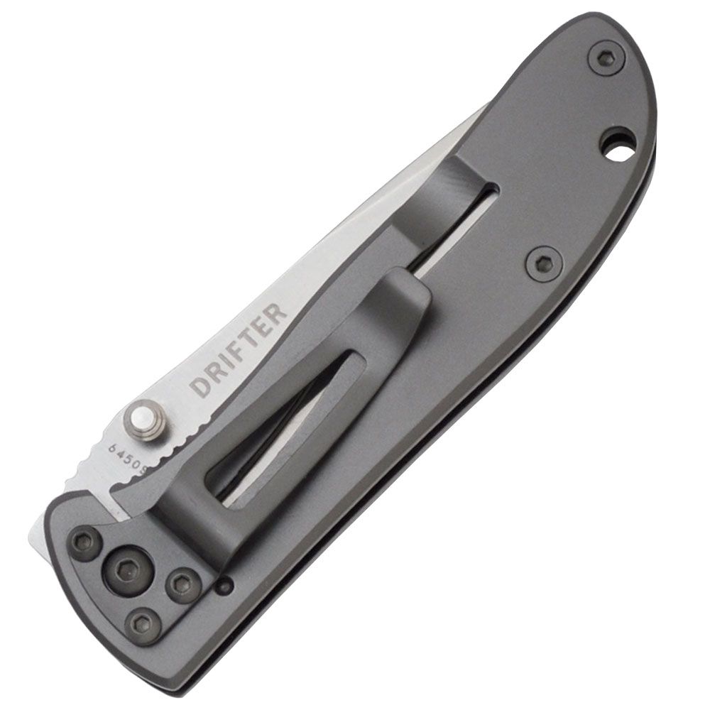 What makes a good logo knife? It should be affordable, and it should have some large flat areas on the blade or frame suitable for logo imprinting. So we are very happy to present the Drifter series. They're high-quality knives that are priced low enough to purchase in quantity, and have flat areas that are perfect for our "Company Billboard" imprinting by laser or silk screen. Or you can take any one to your local trophy house for personalized engraving. The Drifter G10 is a locking liner folder with black G10 scales and a 8Cr14MoV stainless steel 2.875" drop point blade in a gray titanium nitride finish. It features an InterFrame build with stainless steel liners and a black stainless steel clip. It is available in both Razor-Sharp or Combined Razor-Sharp and Triple-Point™ Serrated edges.