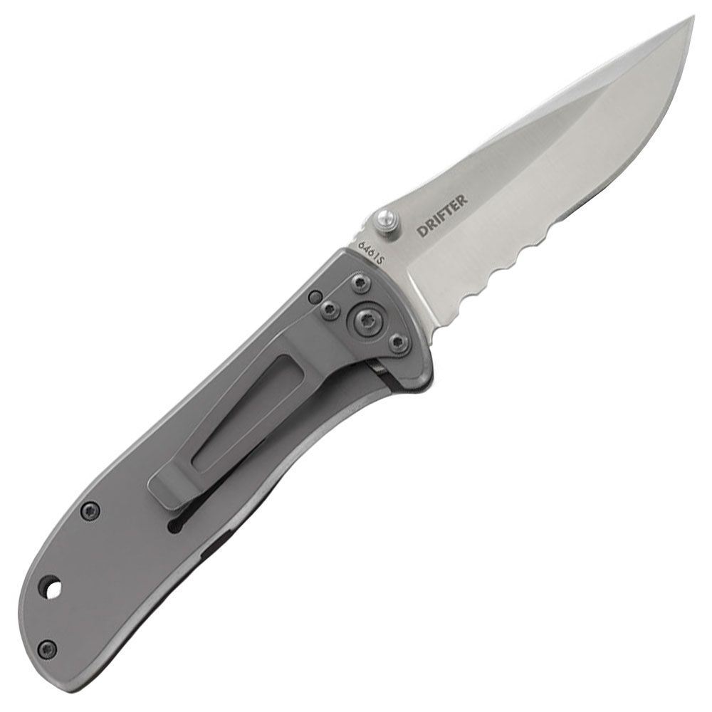 A basic pocket knife. Because really, what more do you need?The CRKT Drifter series is a family of affordable, no-nonsense folding pocket knives that show up to work early and stay late. They're no frills, no fanciness - they just get the job done right. The new Drifter is larger than the Original Drifter , giving you more real estate in hand and more blade to beat through tough tasks. Its stainless steel handles are ideal for personalized laser etching or simple engraving. This everyday carry knife has an ambidextrous thumb stud for easy left and right handed opening. A frame lock keeps the knife solidly in place when it's open. A tip down carry pocket clip will keep the knife close for when you need it. The CRKT Large Drifter in stainless steel handles is the honey badger of the knife world; don't get in its way.