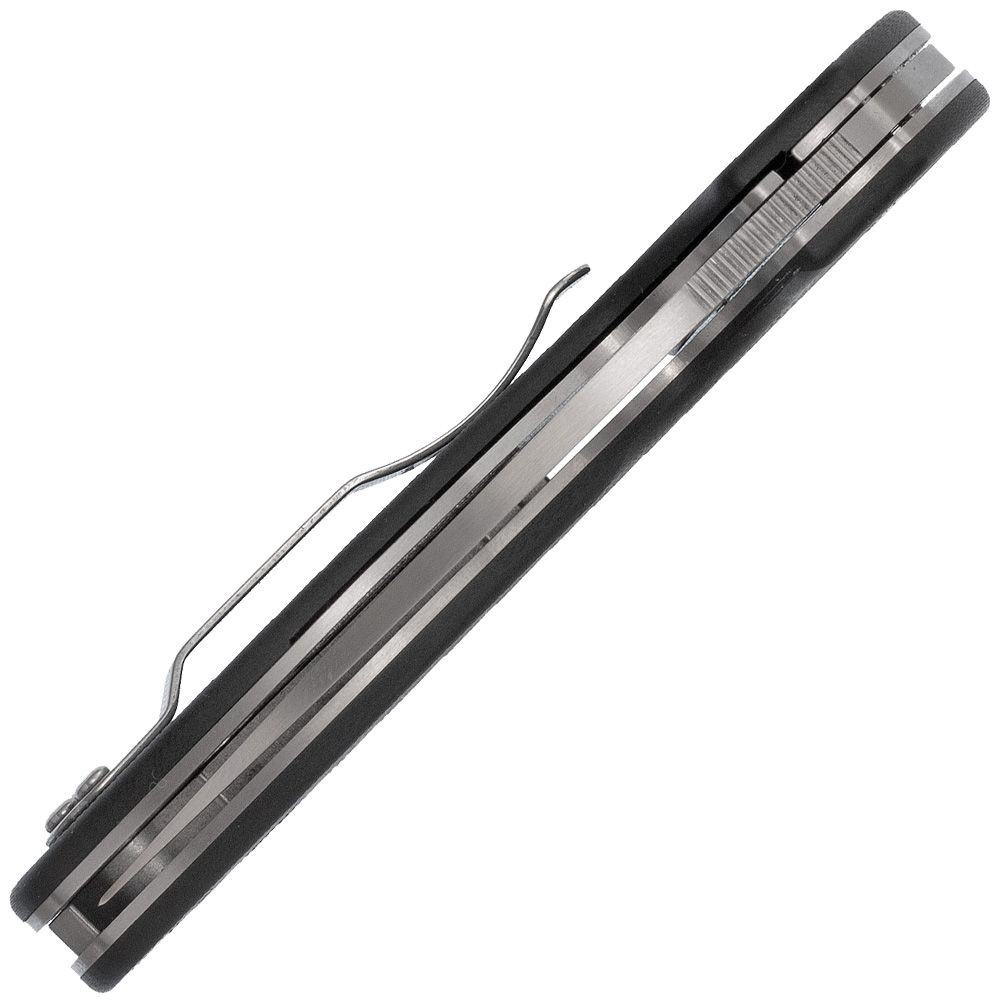 Built on a framework of full, skeletonized stainless steel liners and a stout stainless steel back spacer, the Efficient’s handle construction provides serious structural strength and forms the foundation of its sturdy LinerLock mechanism. To guarantee a secure, non-slip grip, the liners are capped with high-traction, textured black G-10 scales and include a generous cutout that allows easy right-handed access to the blade’s Round Hole, as well as convenient, one-handed release of the lock. To keep the Efficient poised and ready for action, it includes a reversible hourglass clip that can be configured for left or right-side tip-up carry and a lined lanyard hole for easy attachment of fobs and lanyards.