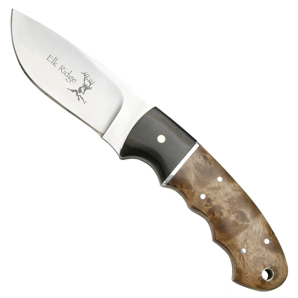 • SPECIAL FEATURES: Fixed Blade Knife – Full Tang Construction, Two-Tone Burl Wood Handle, Includes Leather Sheath.